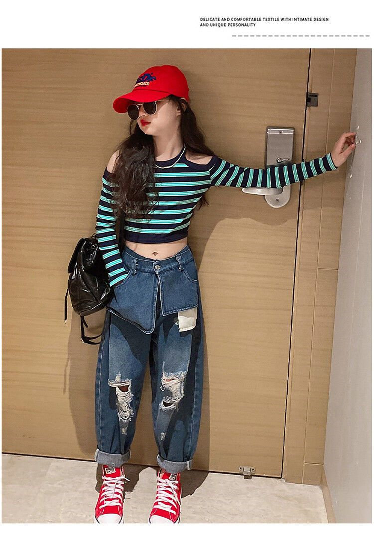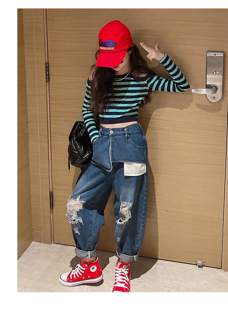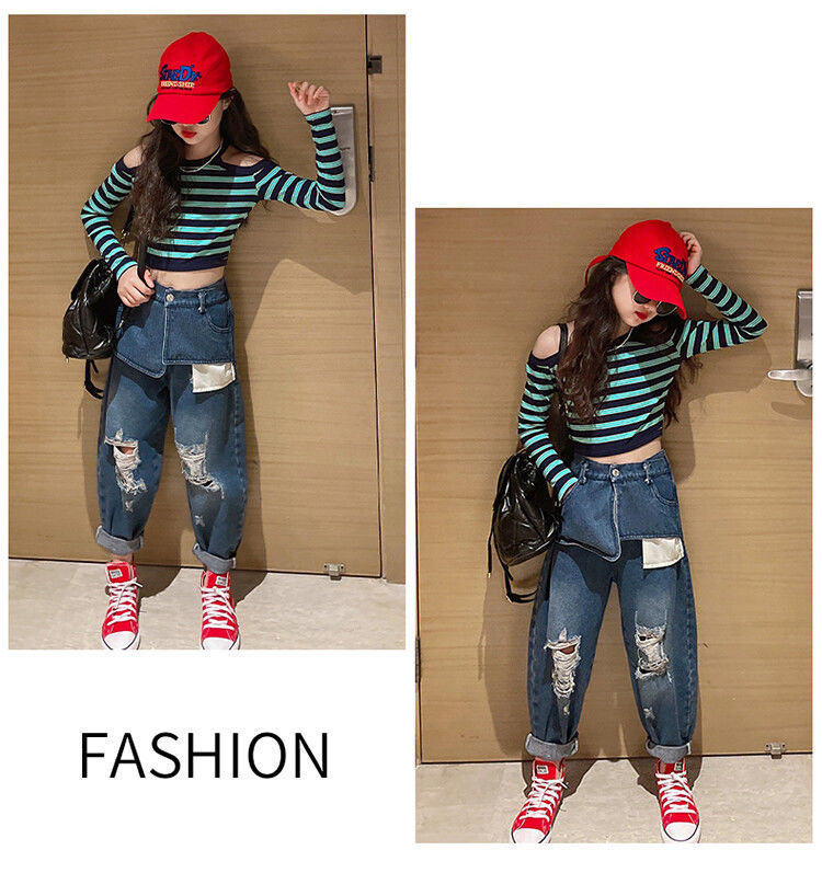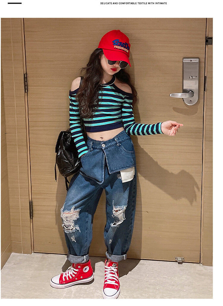| Цвет: | Полосатый полосатый верх, Большие карманные джинсы, Полосатый набор для джинсовой ткани на плече |
