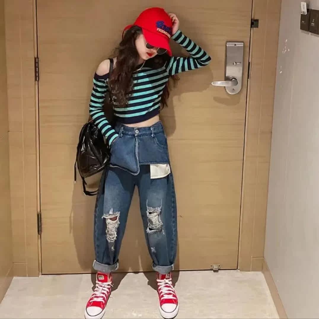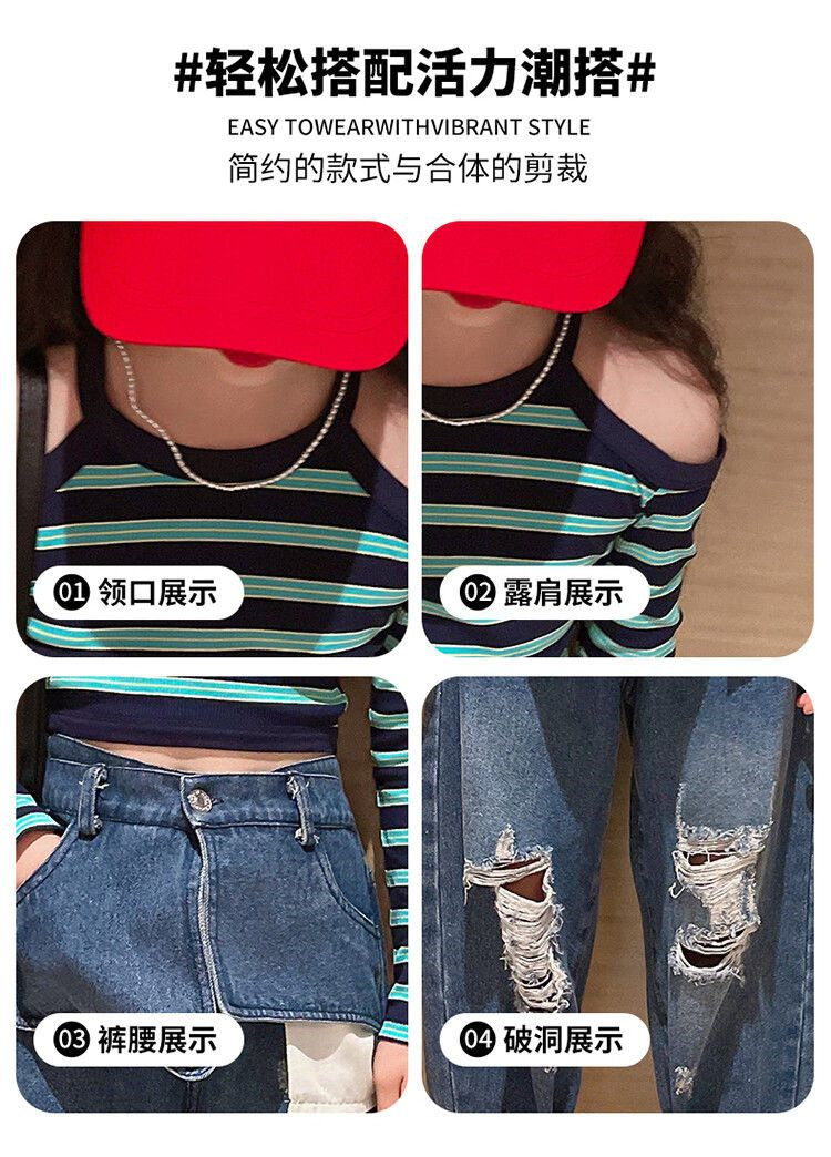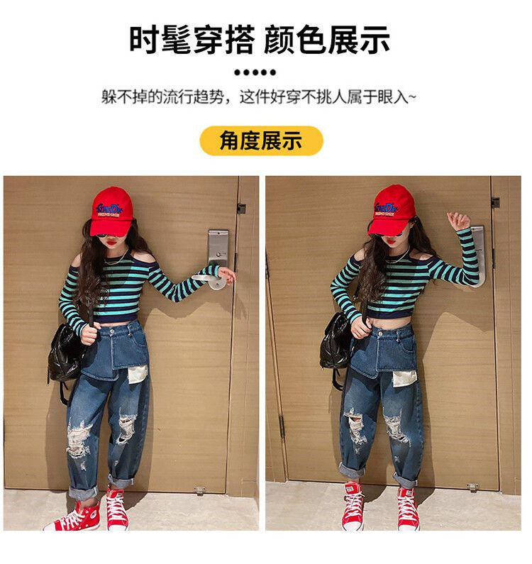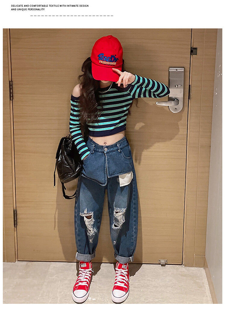 | Цвет: | Полосатый полосатый верх, Большие карманные джинсы, Полосатый набор для джинсовой ткани на плече |