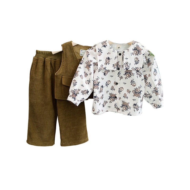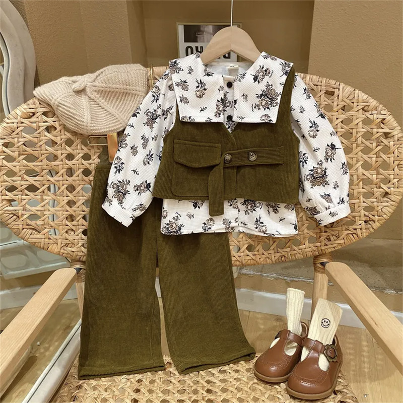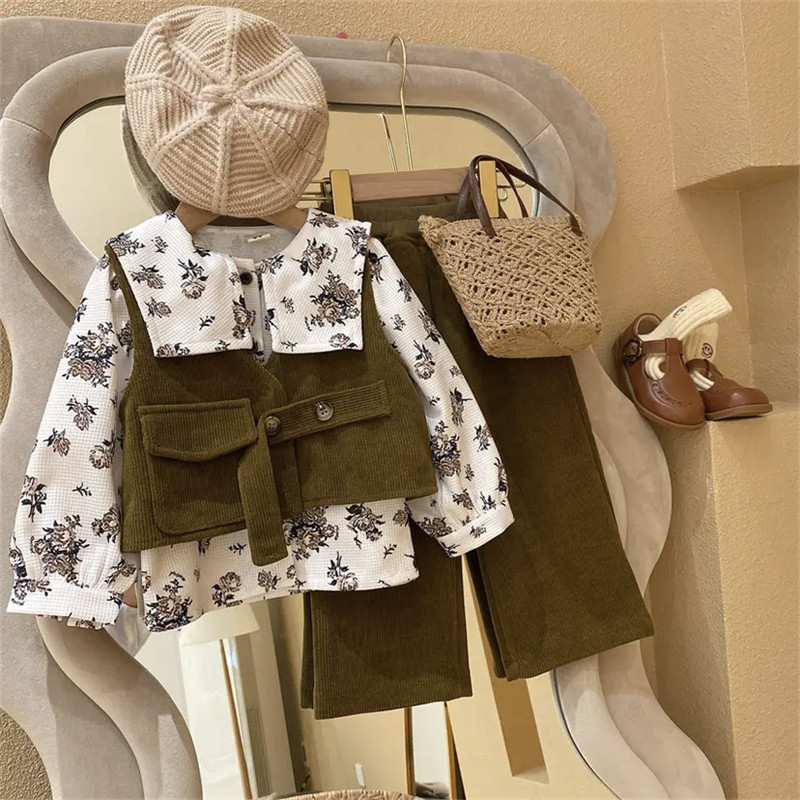 Вельветовый комплект, осенний жилет, ретро детские штаны, детская одежда, в западном стиле, популярно в интернете, 3 предмета