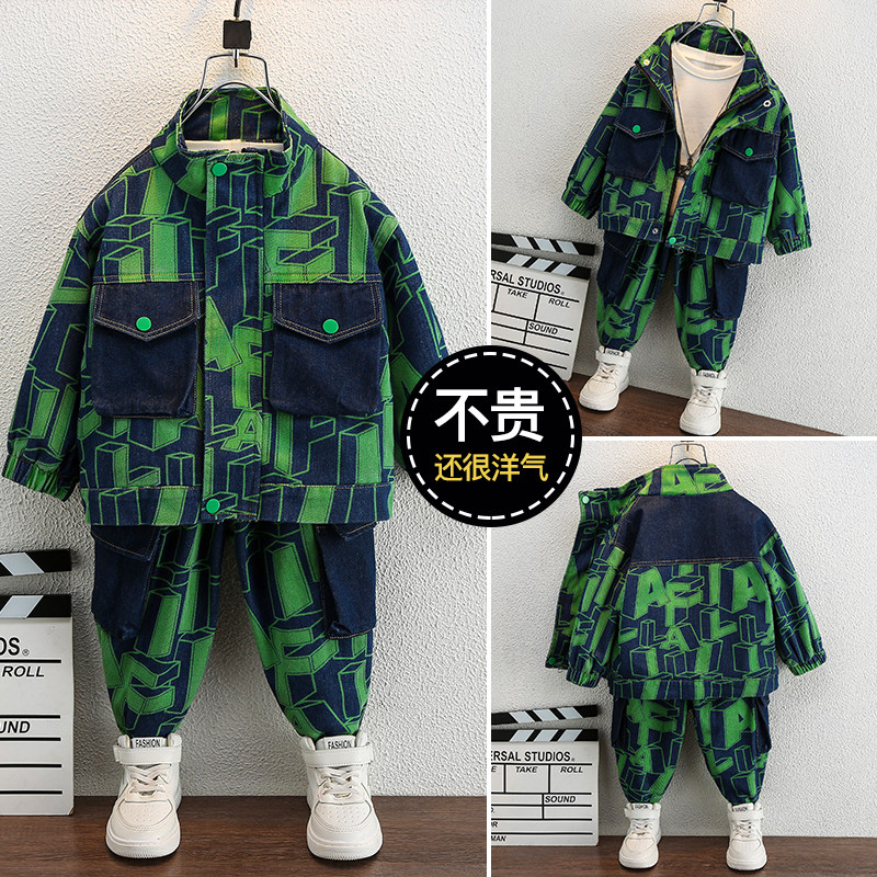 Джинсовый осенний детский комплект для мальчиков, в корейском стиле