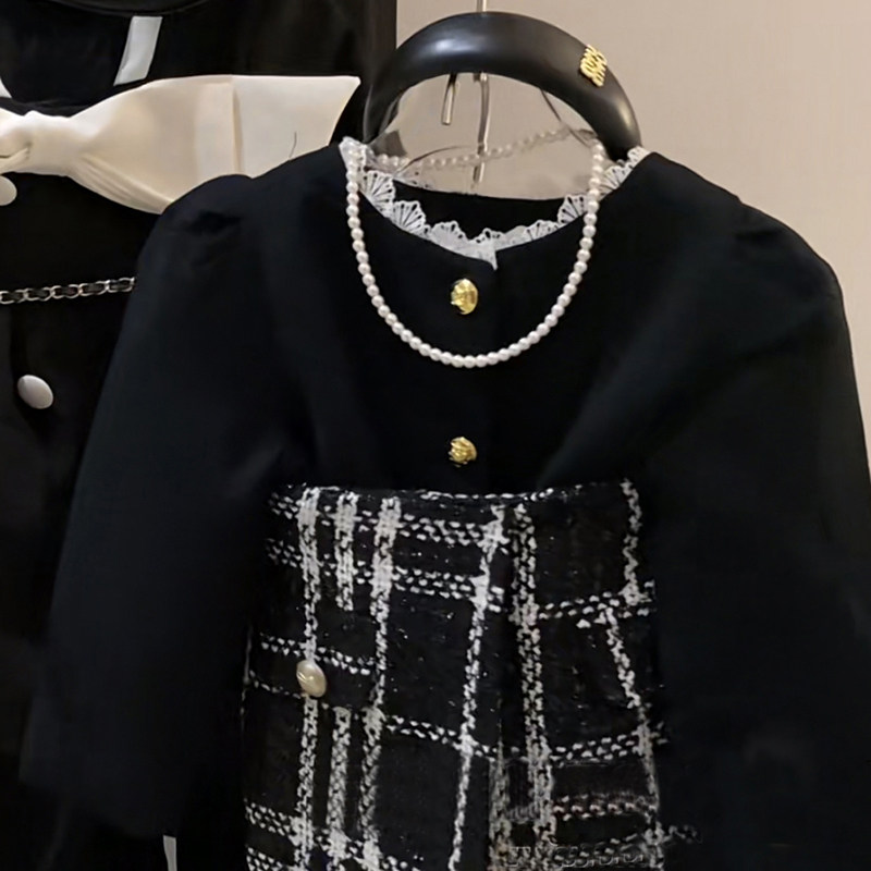 Осенняя куртка, клетчатый лонгслив, юбка, комплект, детская одежда, в стиле Шанель, легкий роскошный стиль, в западном стиле