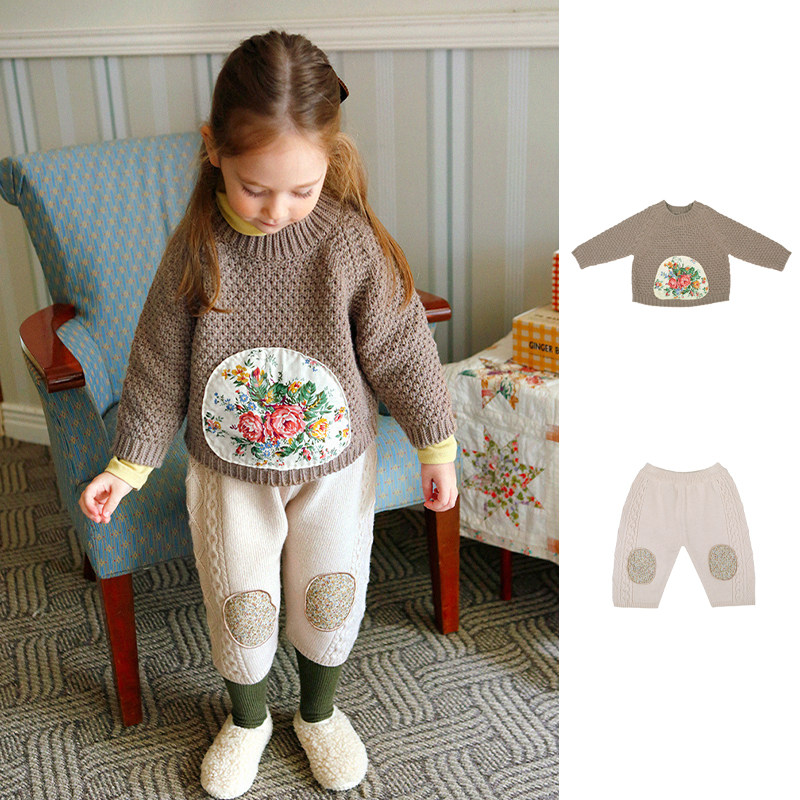 Демисезонный детский ретро пластырь, шерстяной свитер, штаны, в цветочек