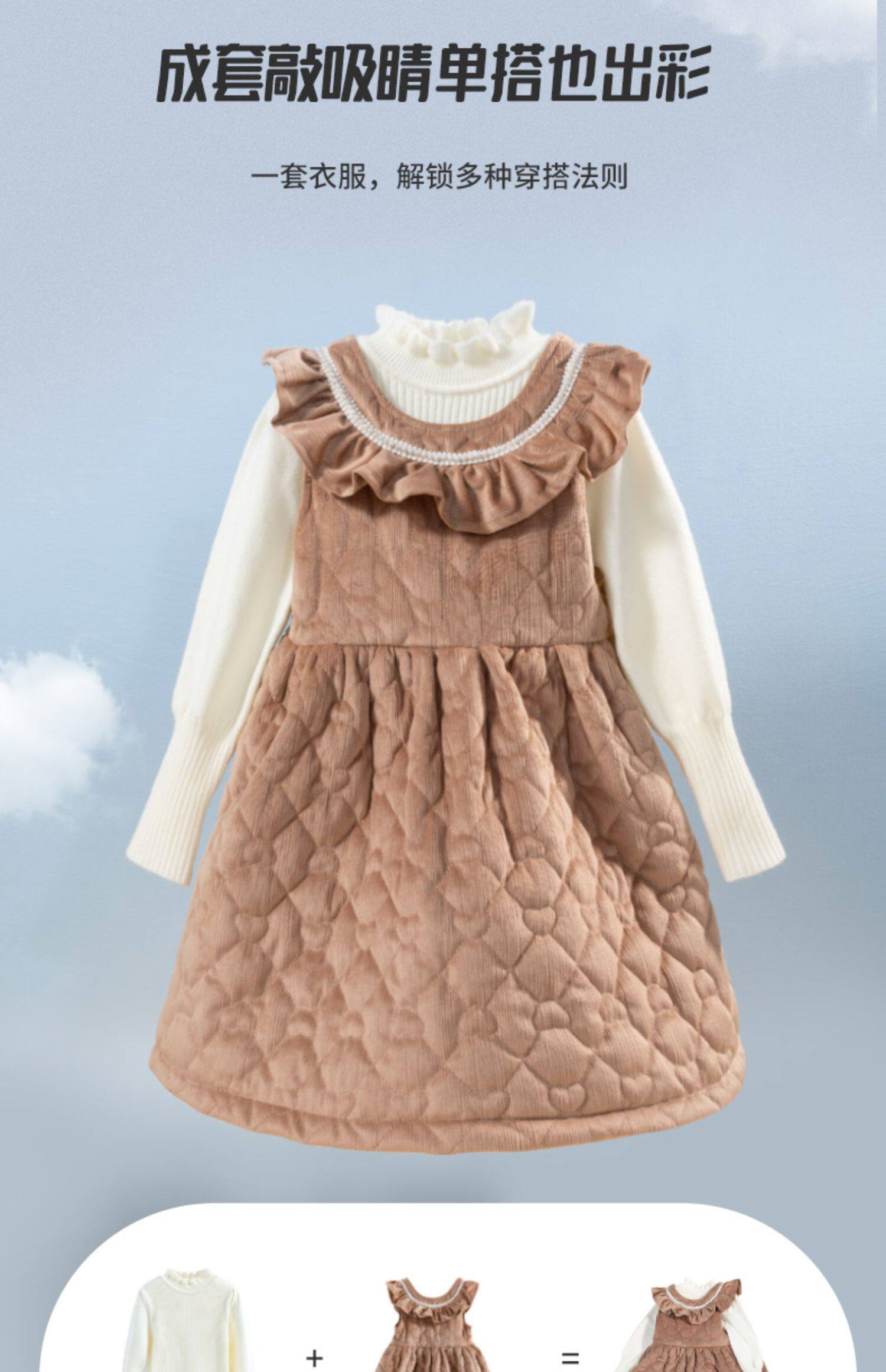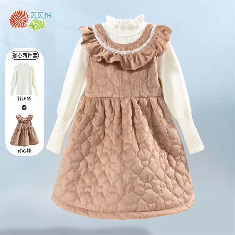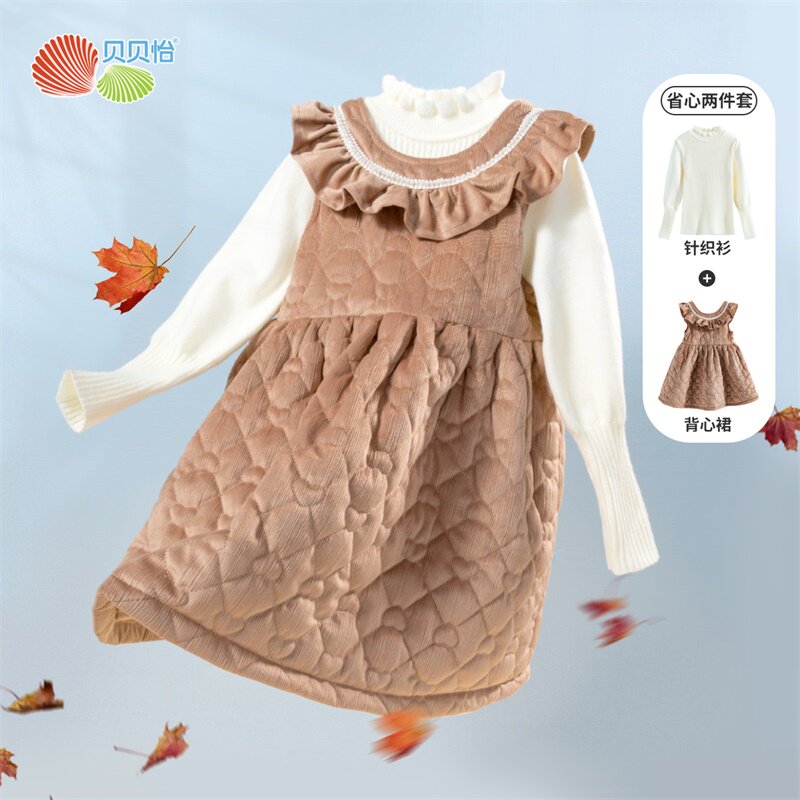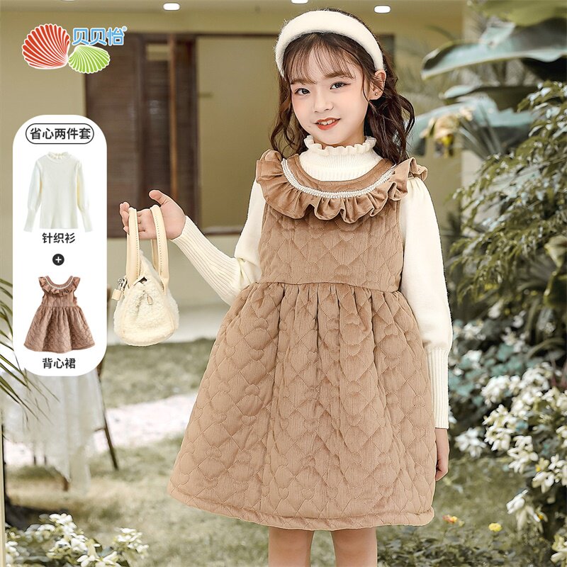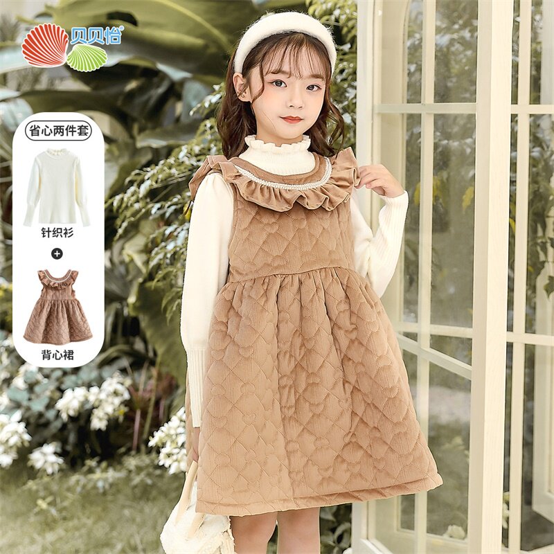 Пуховик, удерживающее тепло платье без рукавов, детский комплект, шерстяной наряд маленькой принцессы, в западном стиле