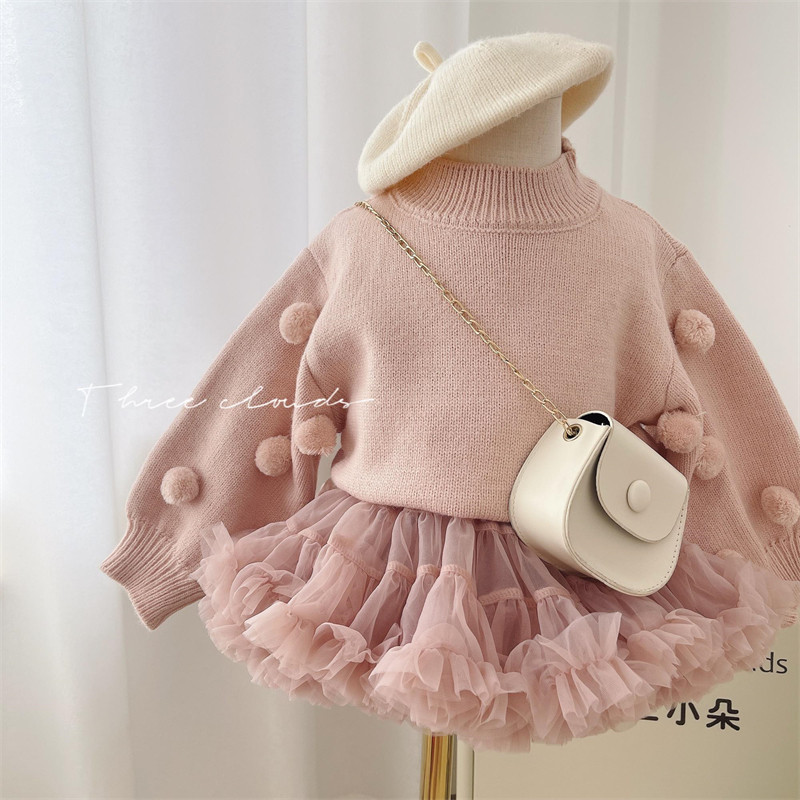 Юбка на девочку, осенний демисезонный детский комплект, наряд маленькой принцессы, свитер, в западном стиле