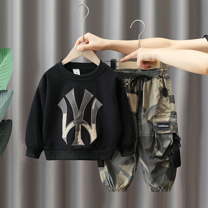 Осенняя детская весенняя камуфляжная толстовка для мальчиков, комплект