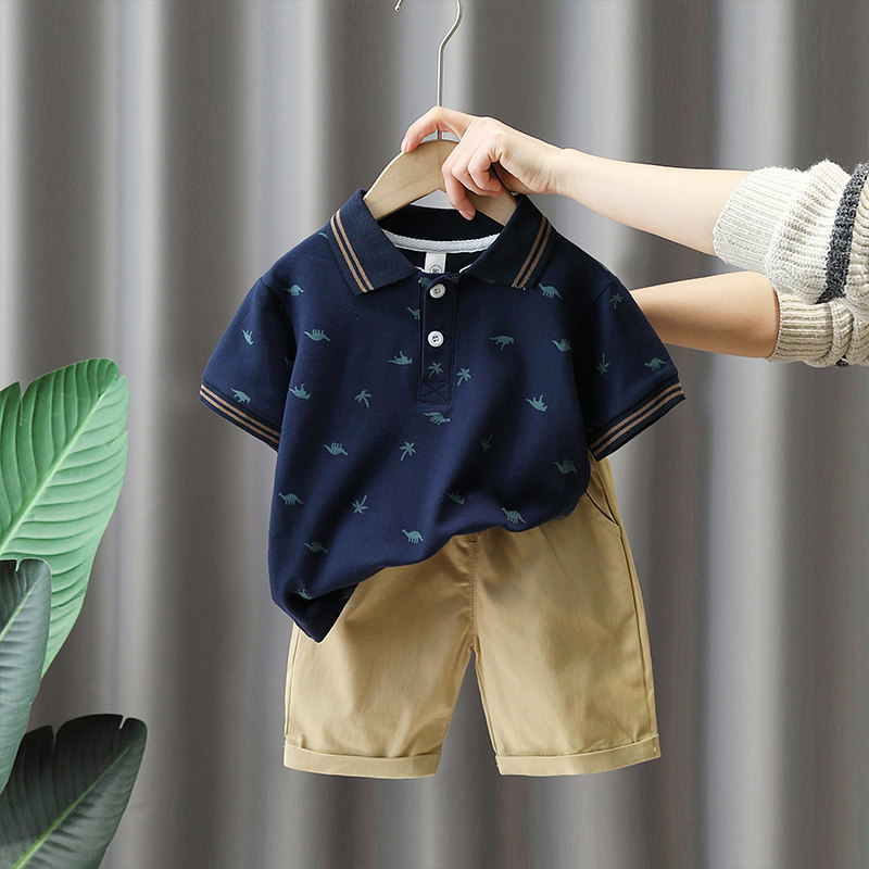 Детские нарукавники, летний комплект, динозавр для мальчиков, детская футболка polo, летняя одежда для отдыха, детская одежда