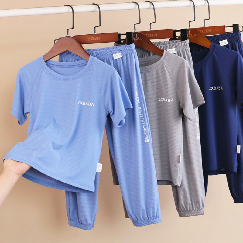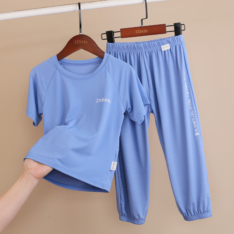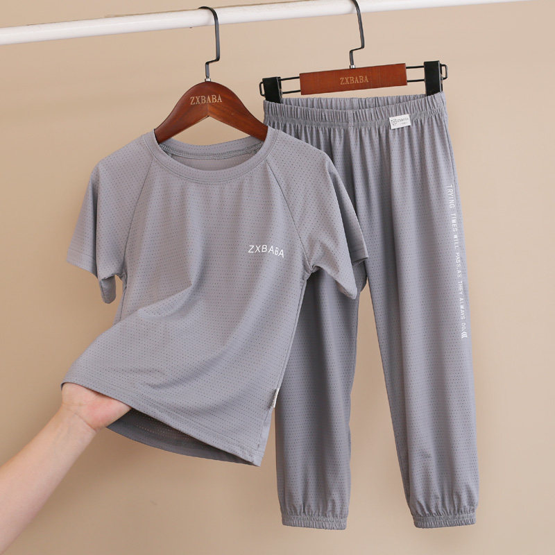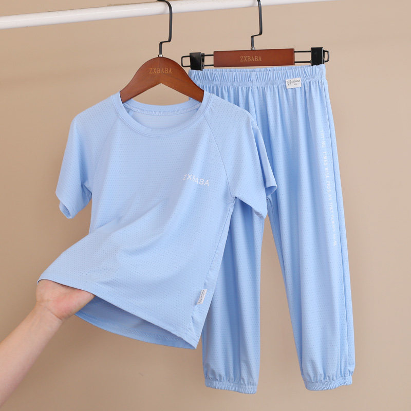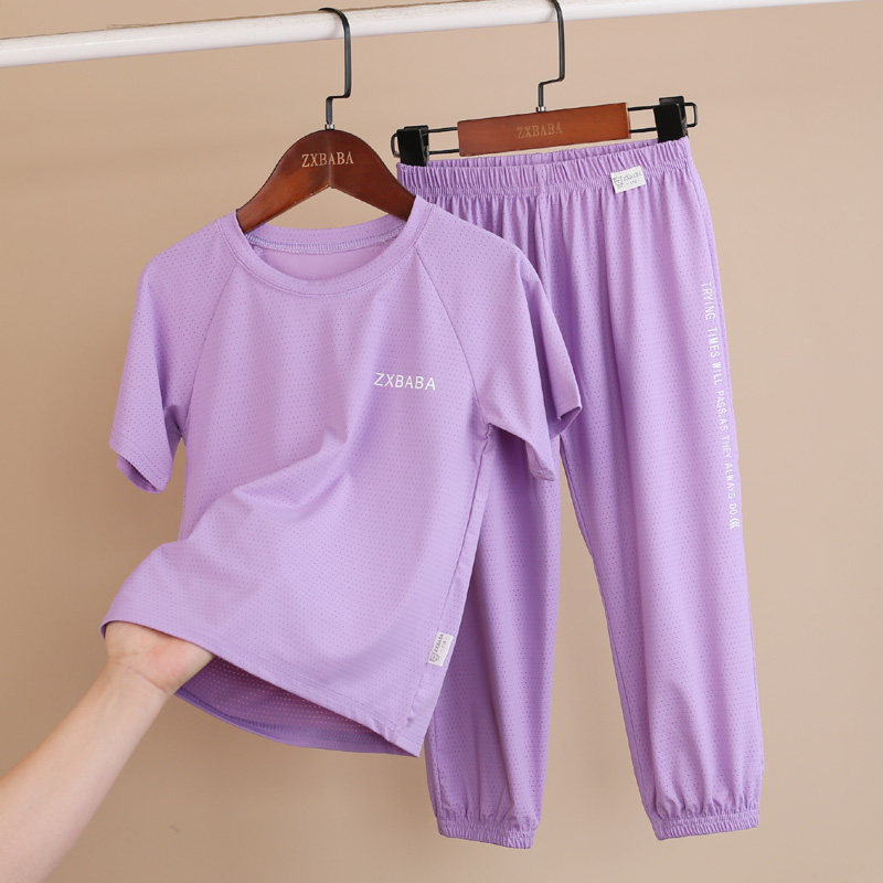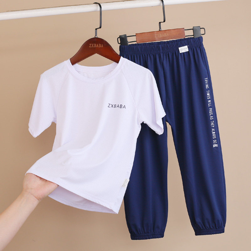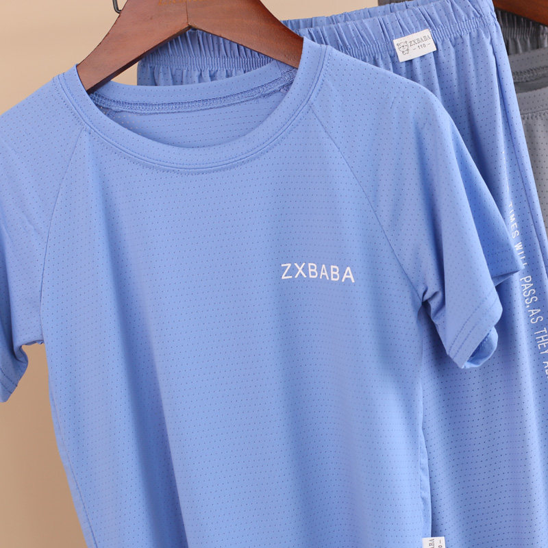 Детские шелковые быстросохнущие штаны с круглым воротником подходит для мужчин и женщин, футболка с сеткой, фонарь, короткий рукав