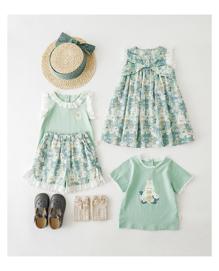 Летнее милое детское мультяшное платье, комплект, короткий рукав, свободный крой