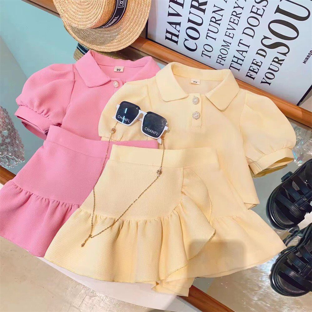 Нарукавники, футболка, мини-юбка, летний хлопковый комплект для девочек, короткий рукав, в западном стиле, 2024 года