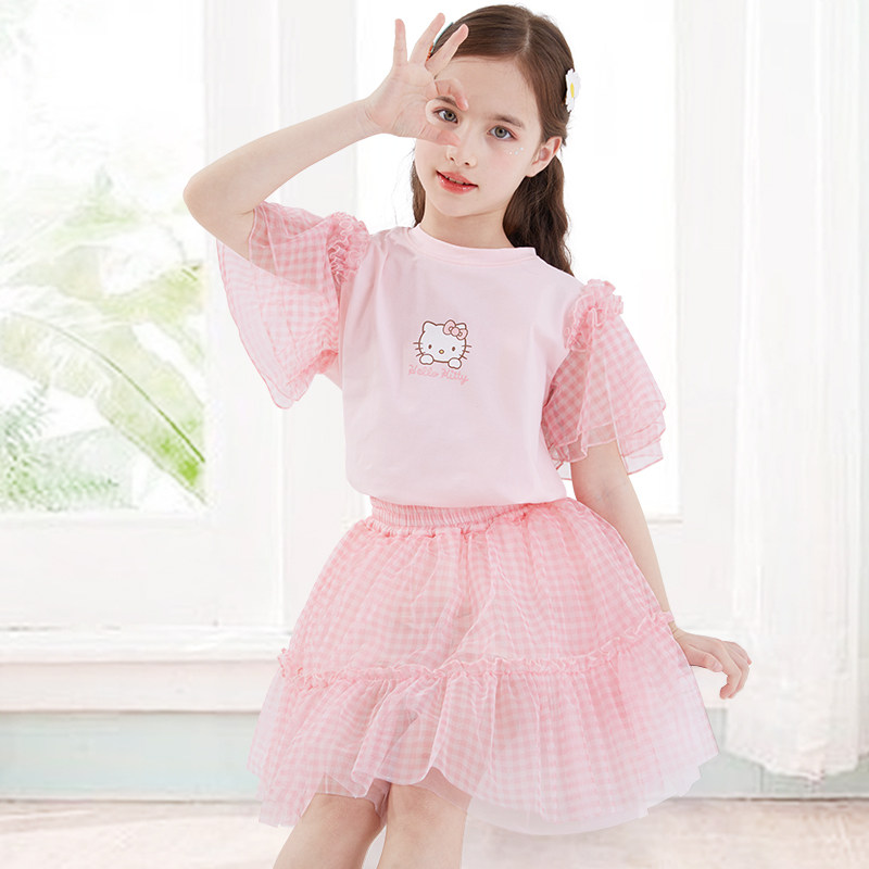 Летний комплект, летняя одежда, футболка с коротким рукавом, платье-футболка, тонкая юбка