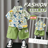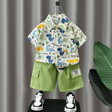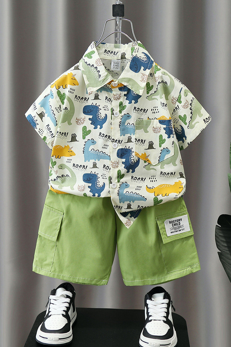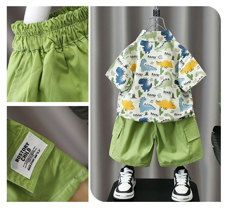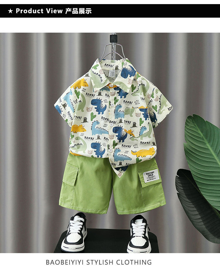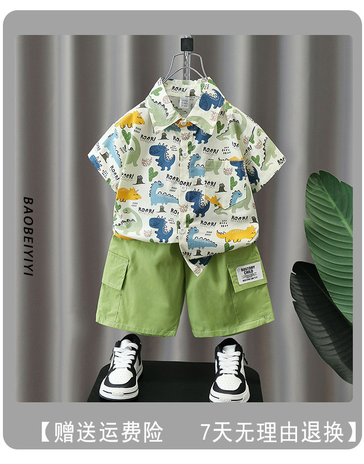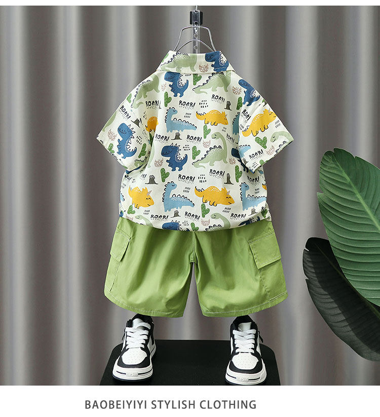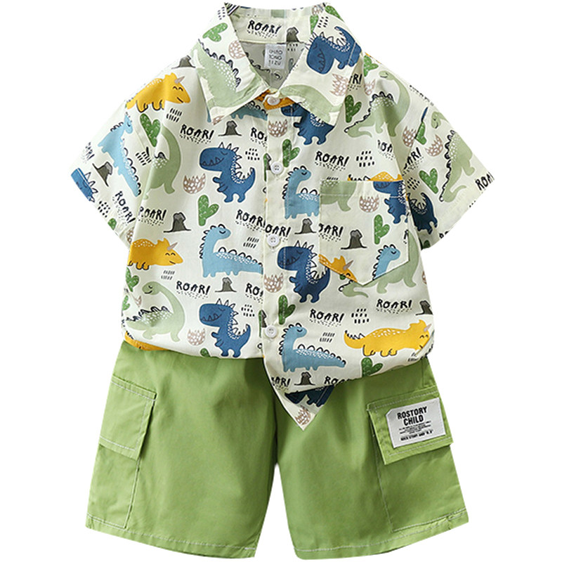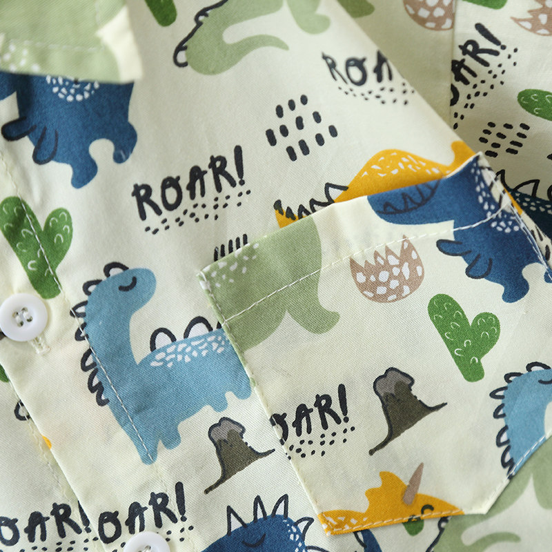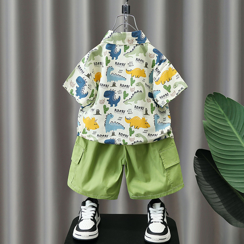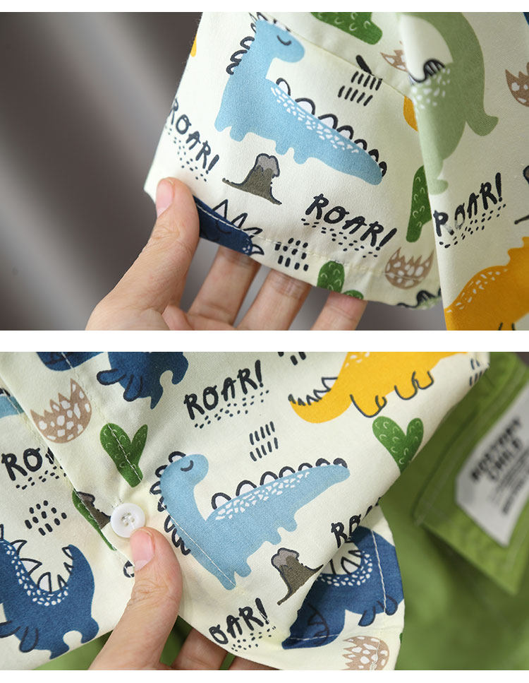 Летние нарукавники для мальчиков, комплект, летняя летняя одежда, динозавр, детская пляжная рубашка, короткий рукав, коллекция 2023