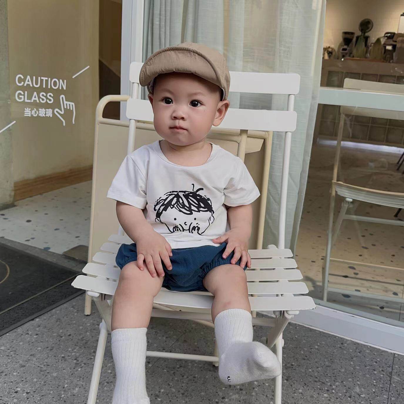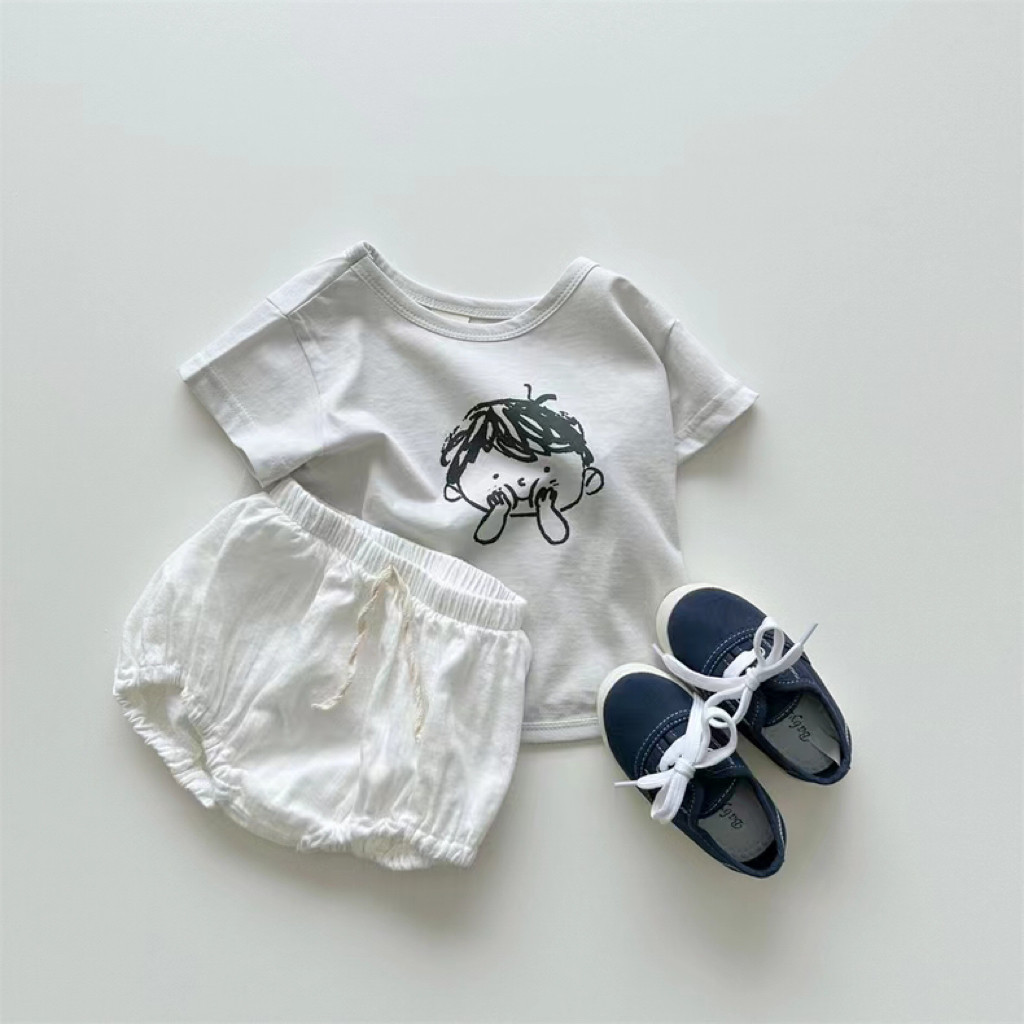 Брендовый детский мультяшный комплект, летние универсальные минифигурки для отдыха, принт, короткий рукав