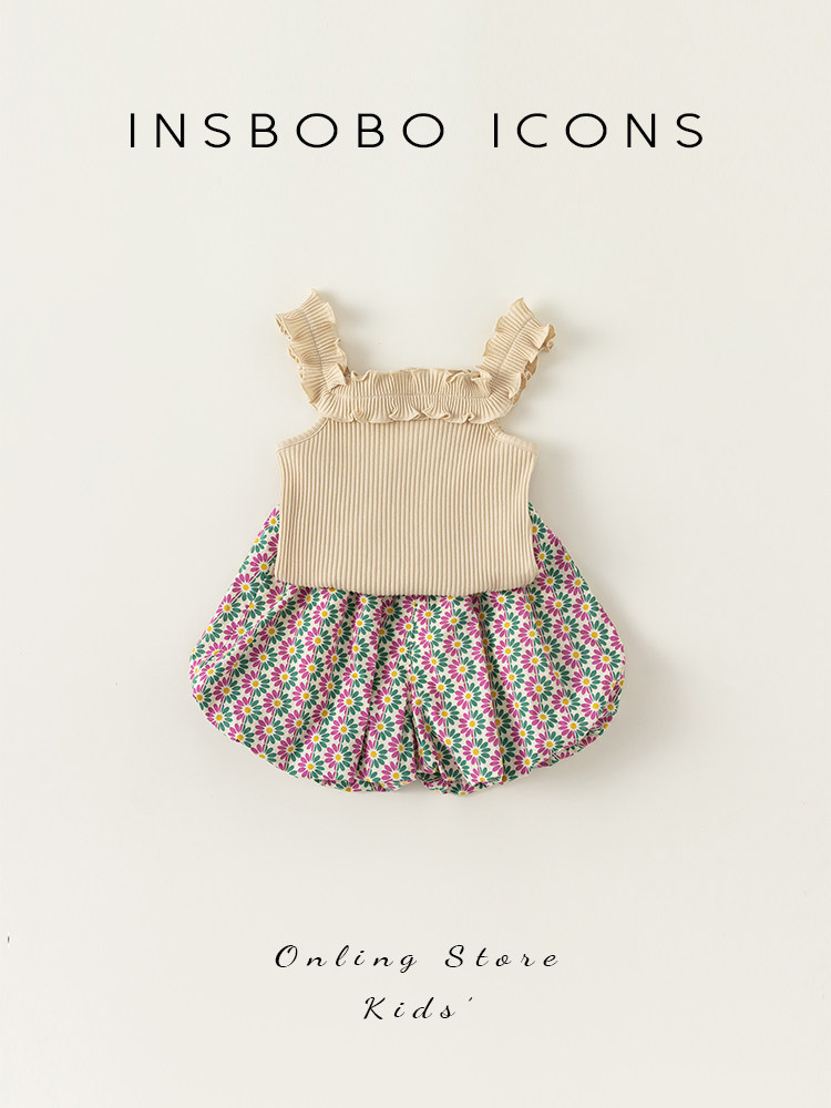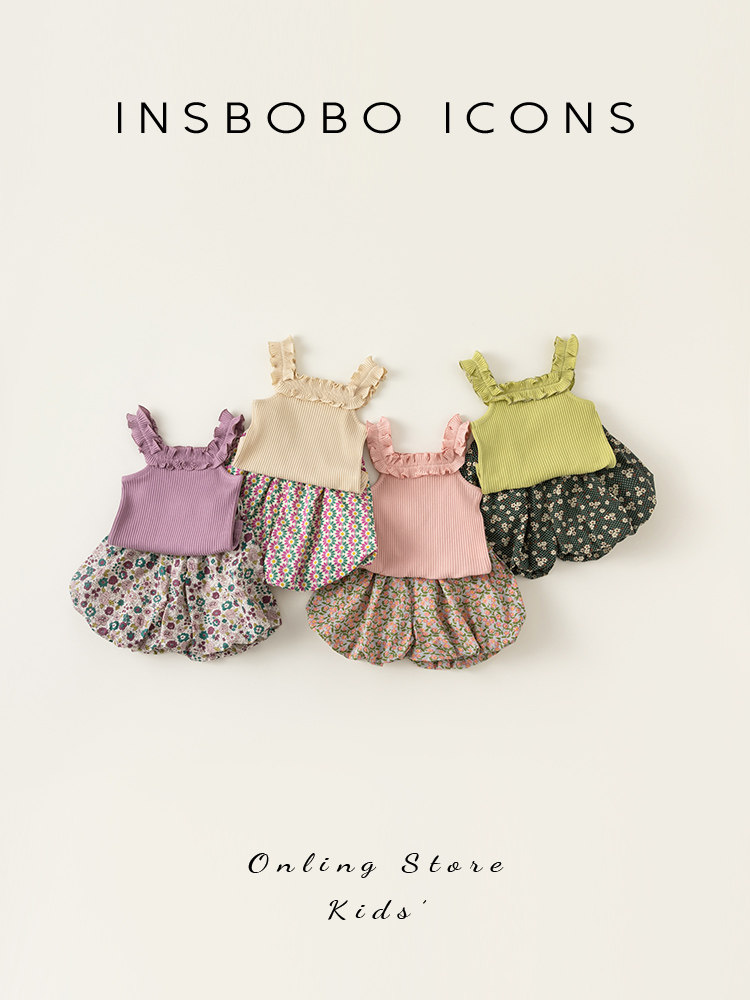 Комплект, летняя летняя одежда для девочек, в западном стиле, популярно в интернете, детская одежда