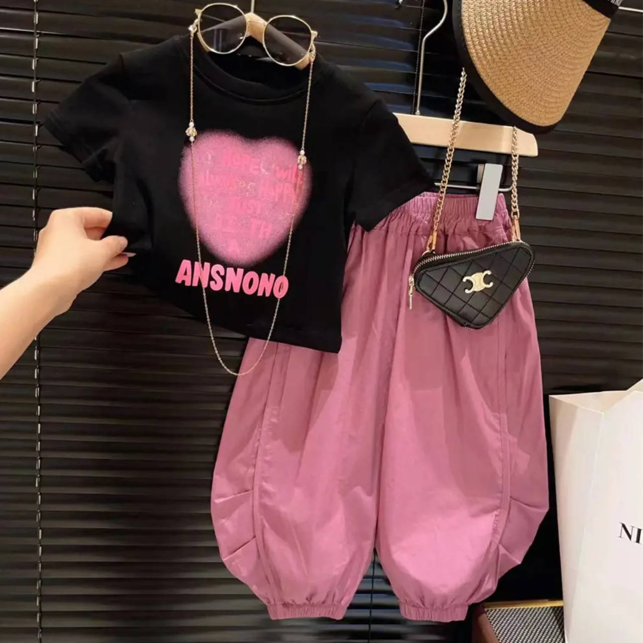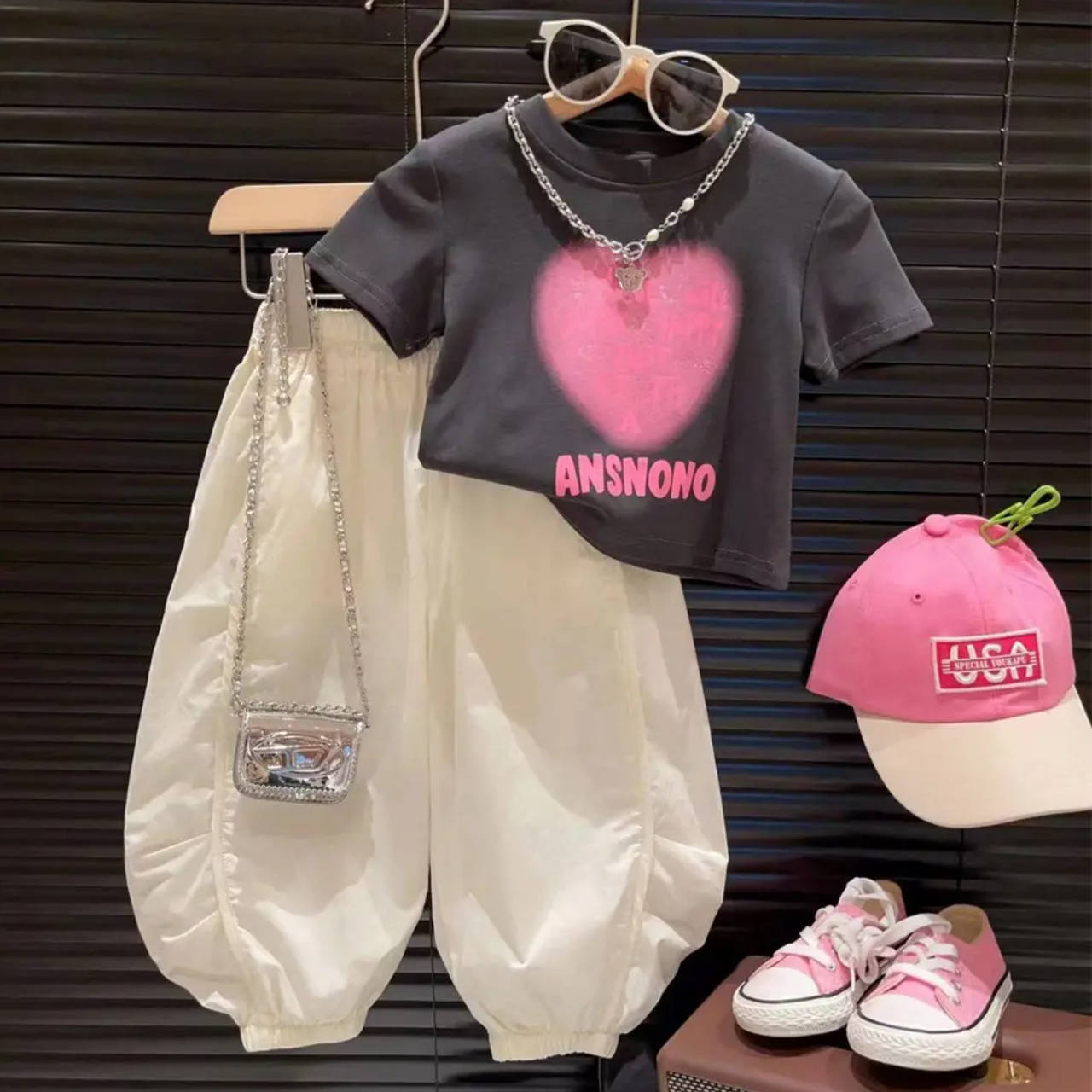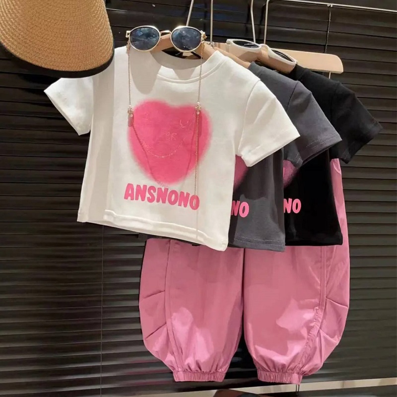 Комплект, летняя футболка для отдыха, штаны, в корейском стиле, детская одежда