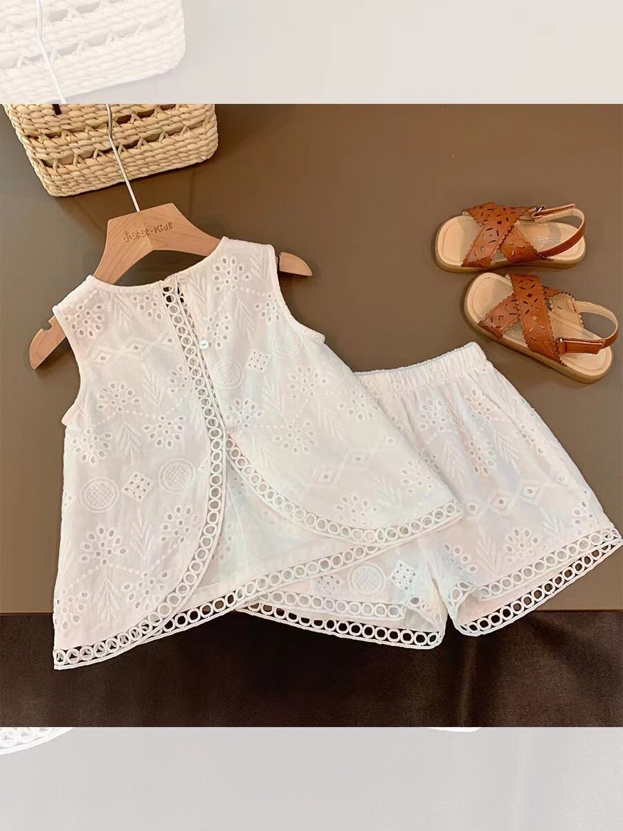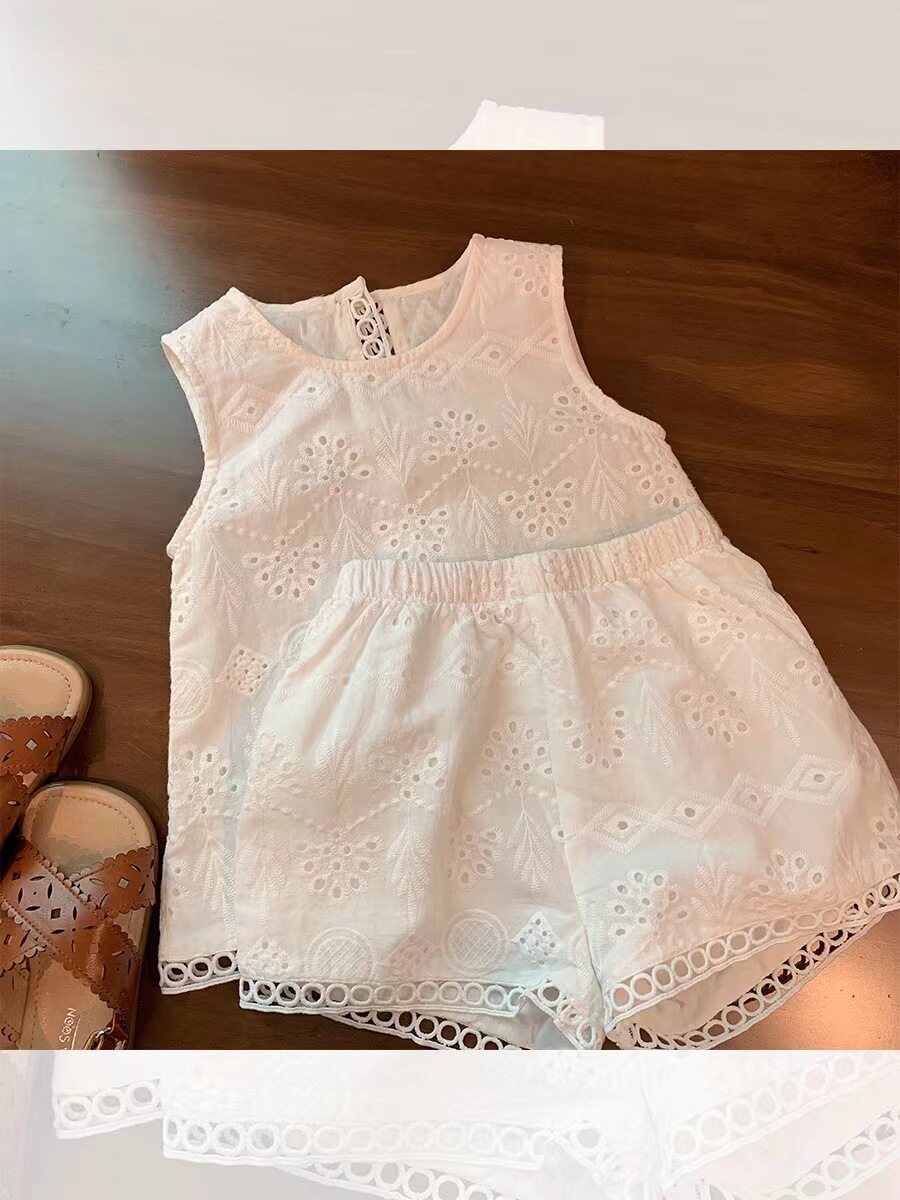 Летняя летняя одежда, кружевная майка топ, комплект для раннего возраста для отдыха, в западном стиле