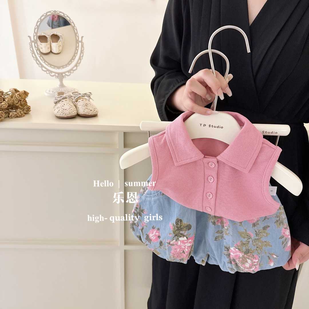 Жилет, футболка, джинсовые штаны для девочек, комплект, в западном стиле, в корейском стиле