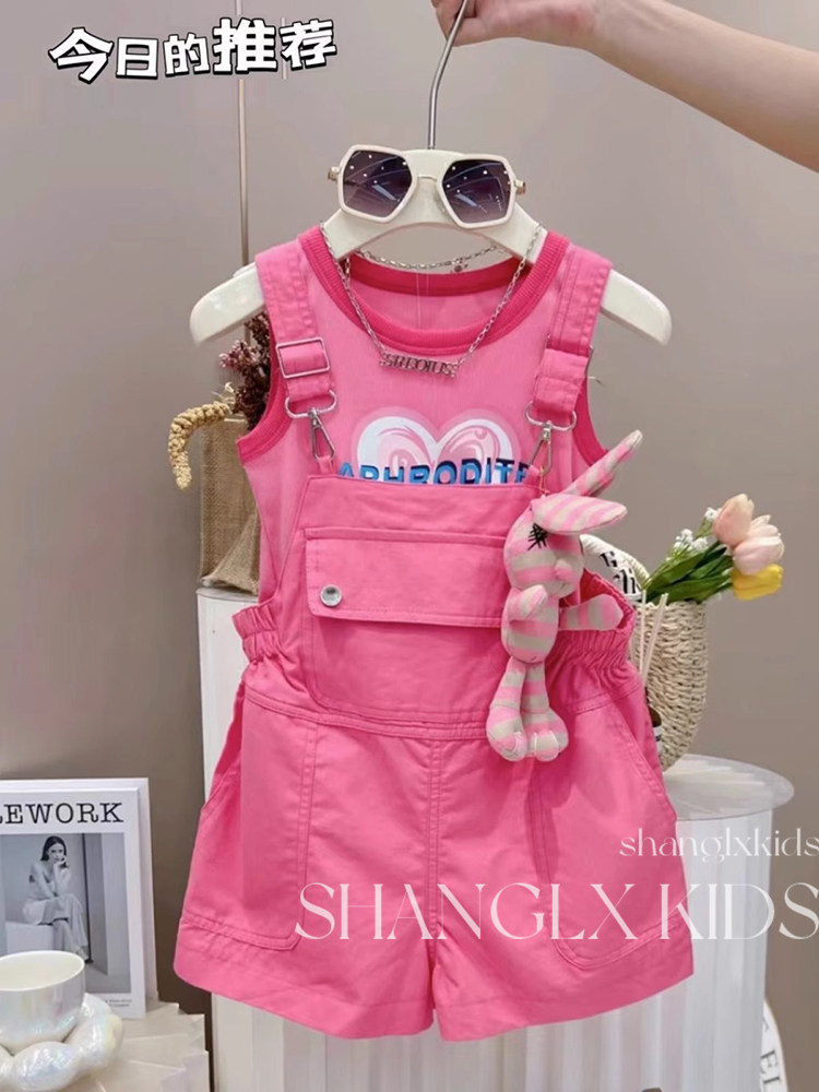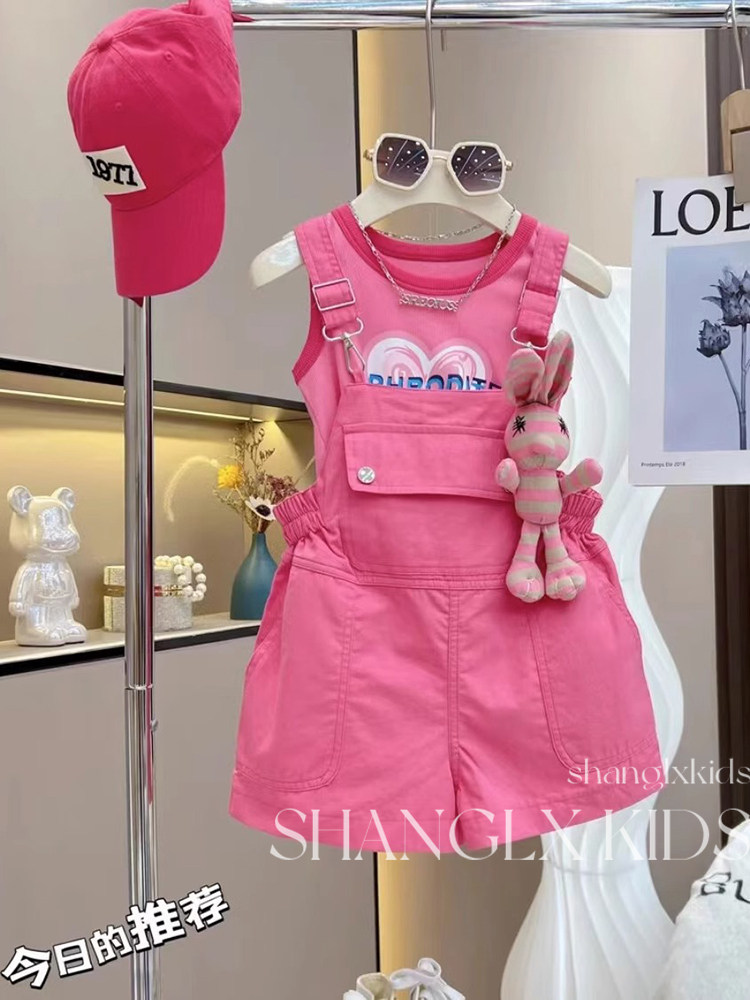 Детский летний комплект, розовая летняя одежда, комбинезон, штаны, детская одежда, популярно в интернете