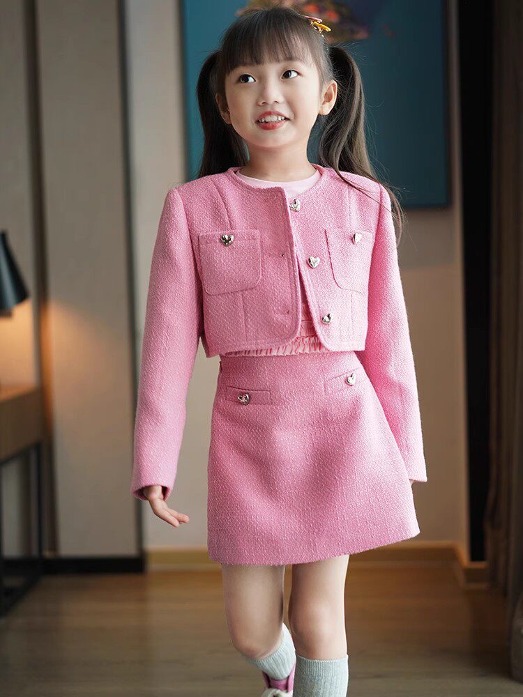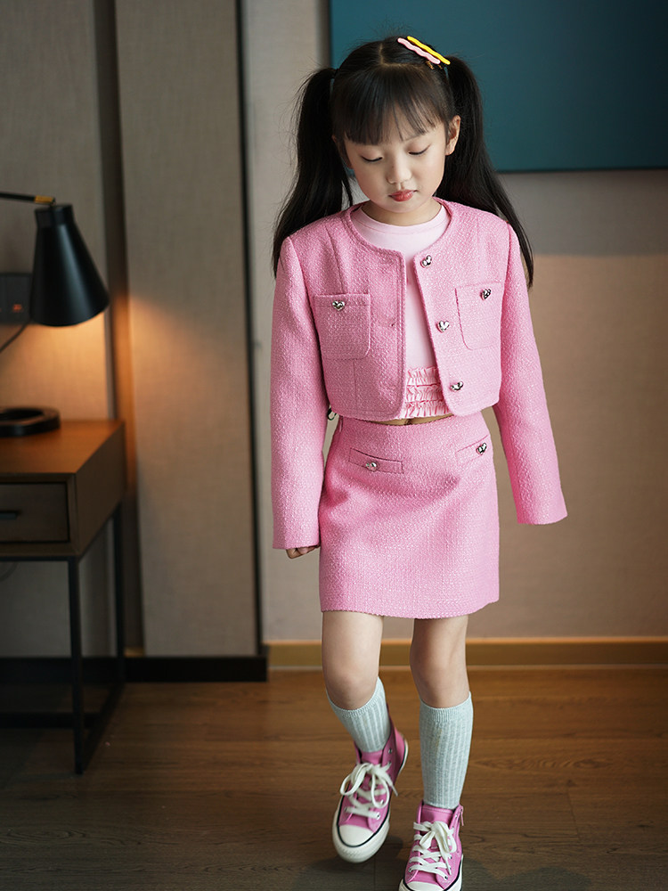 Радужный демисезонный комплект, куртка, юбка, детская одежда, в стиле Шанель
