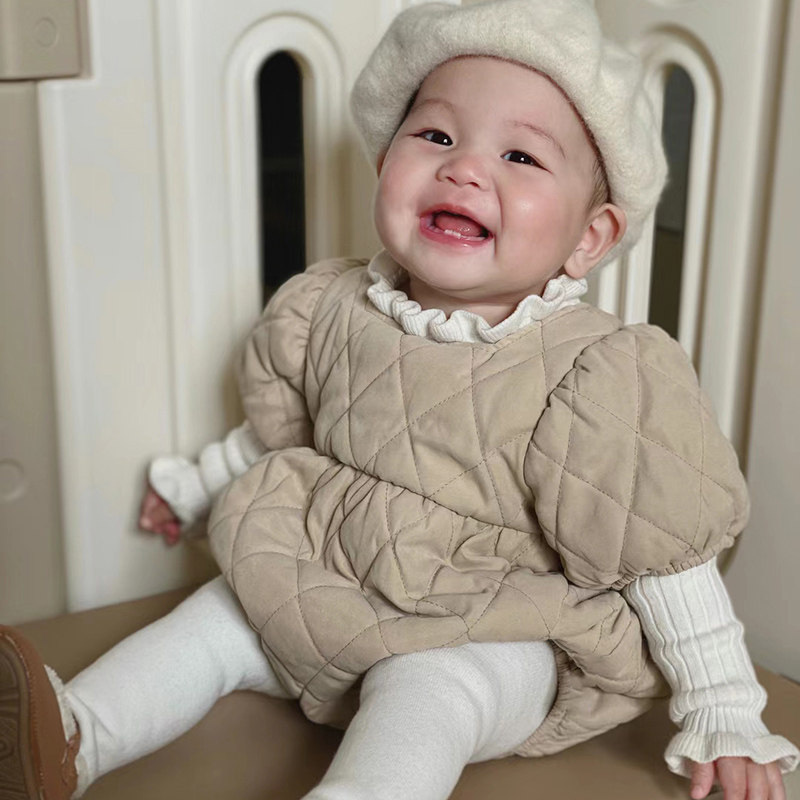 Корейский детский зимний универсальный комплект, стеганое удерживающее тепло боди, комбинезон, в западном стиле, 12 мес.
