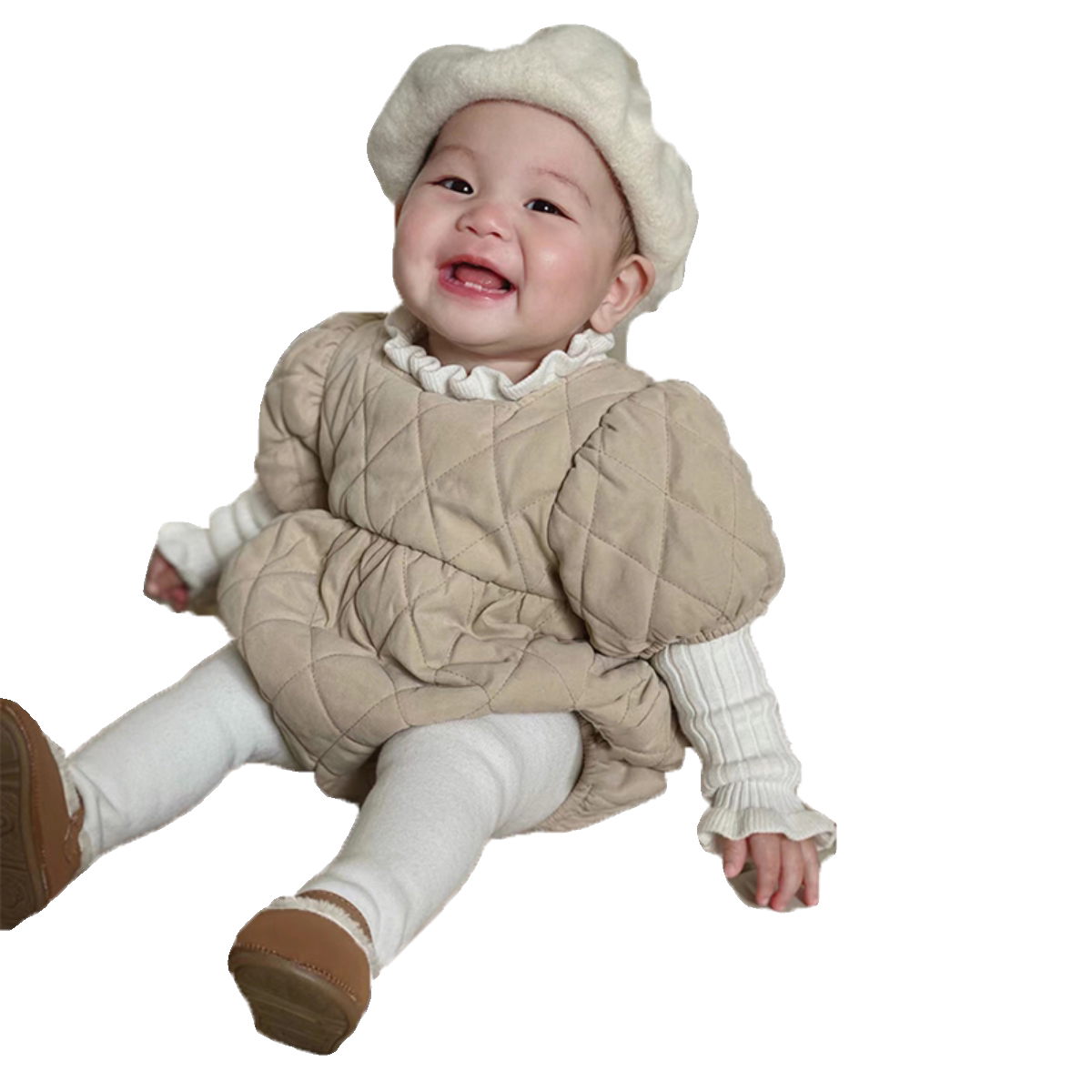 | Цвет: | Хаки стеганое боди, Белый трикотажный свитер, Белые базовые колготки, увеличенная толщина |