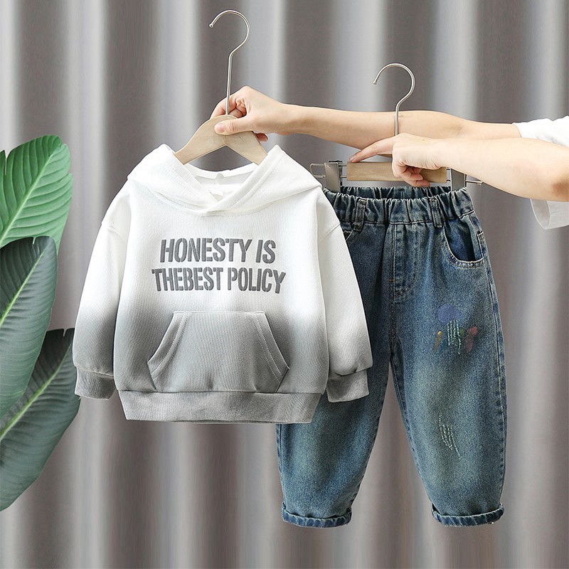 Осенняя толстовка с капюшоном для мальчиков, детский осенний комплект, градиент
