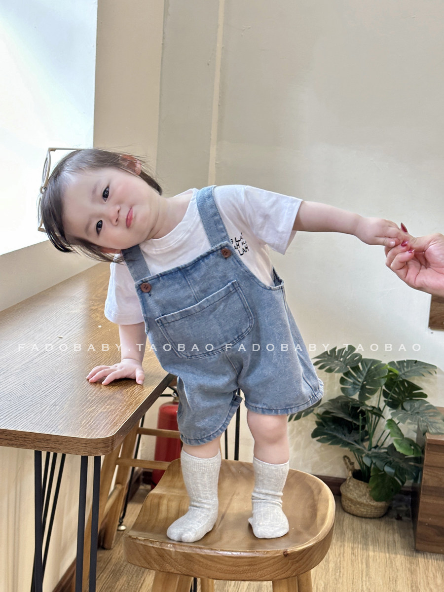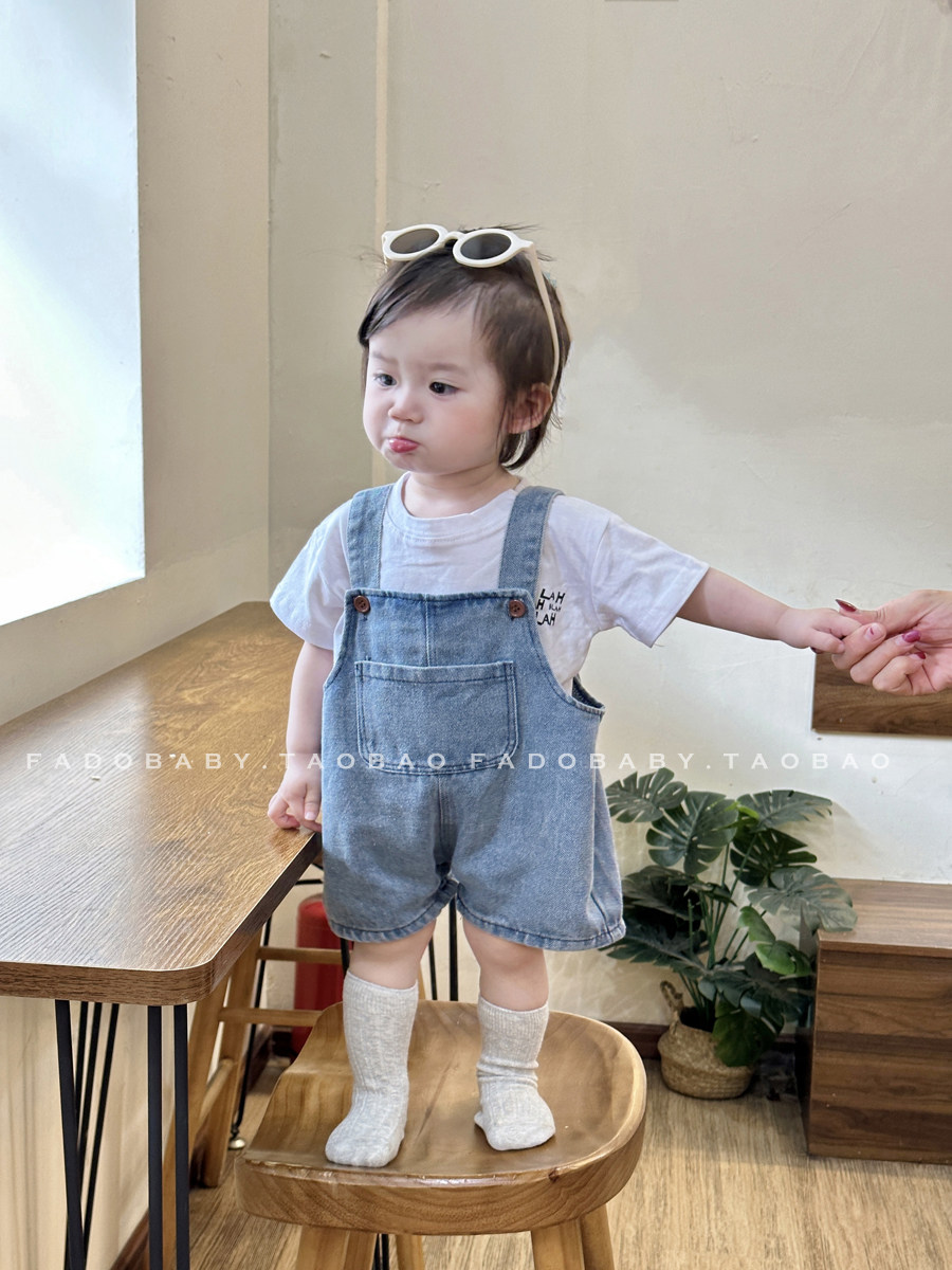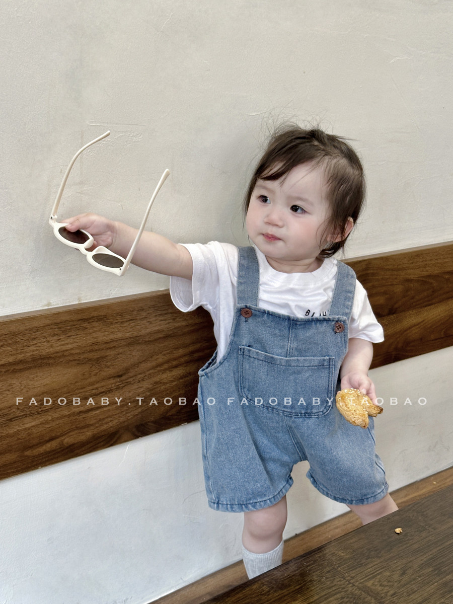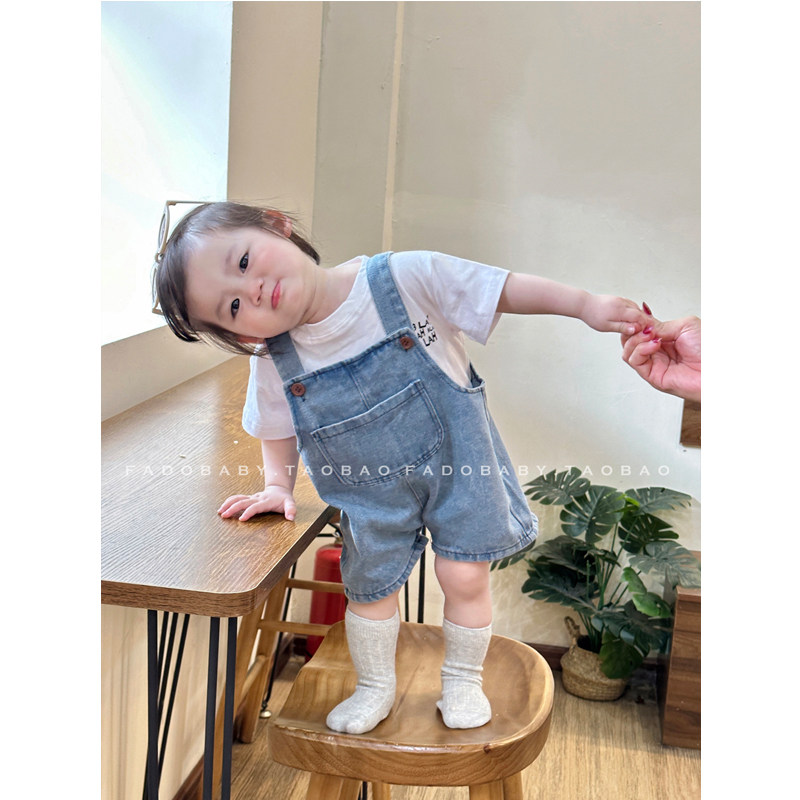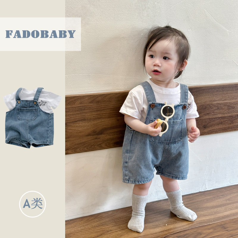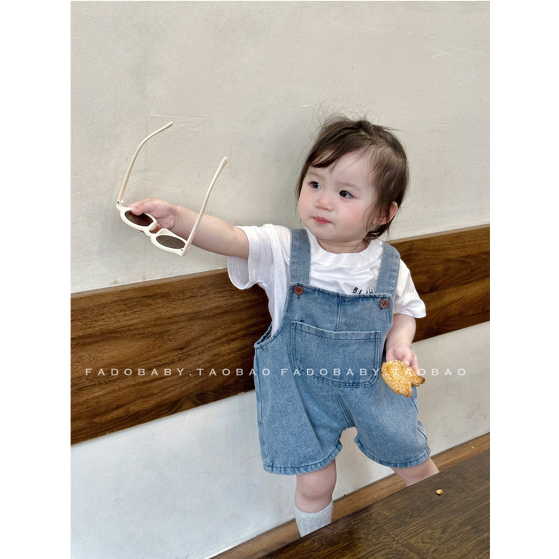 Брендовый летний комбинезон для младенца для девочек, джинсовые штаны, комплект, летняя одежда