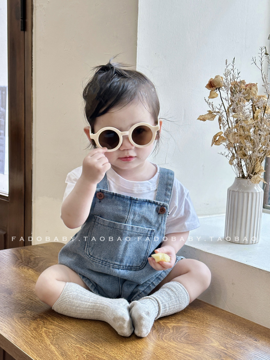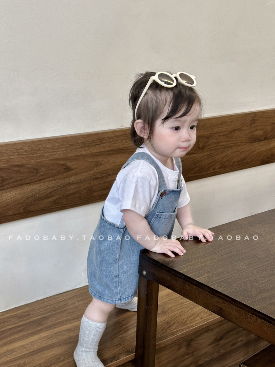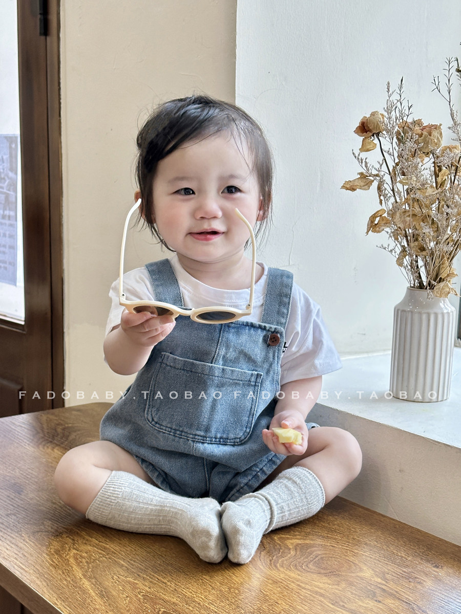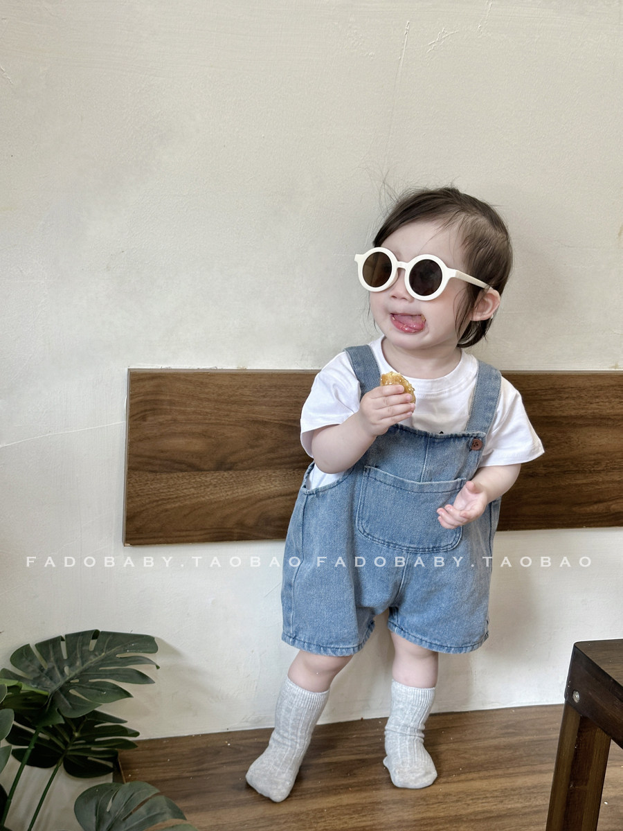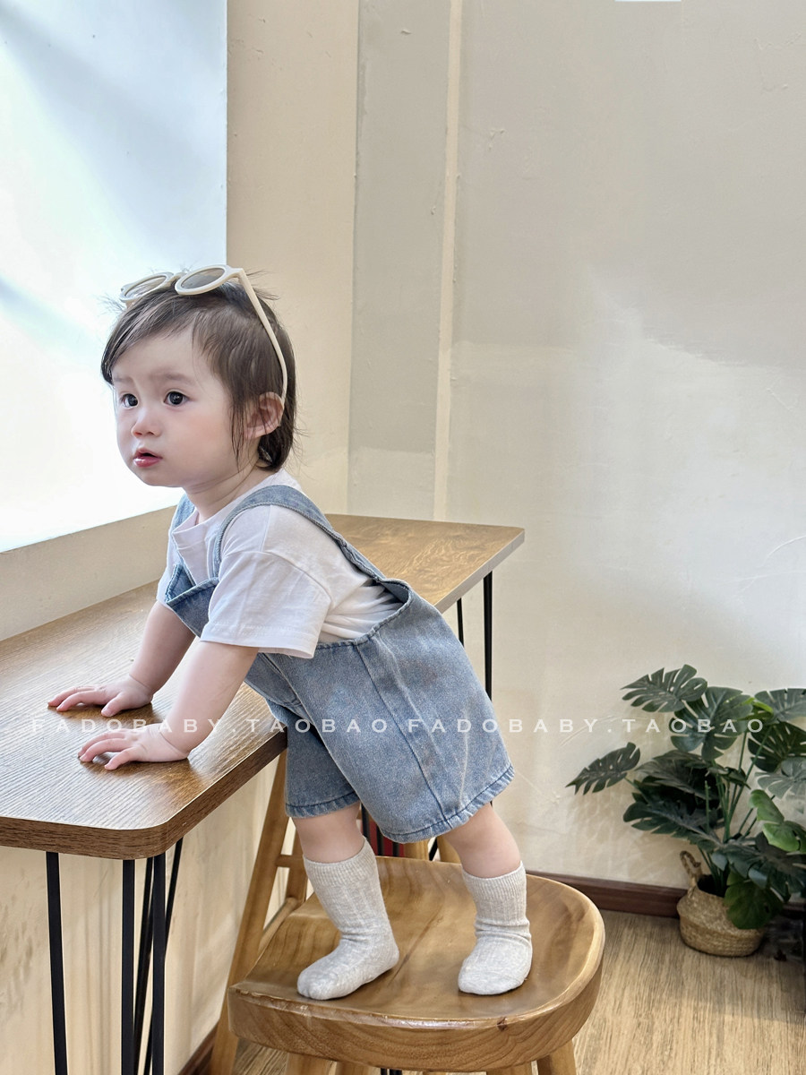 Брендовый летний комбинезон для младенца для девочек, джинсовые штаны, комплект, летняя одежда