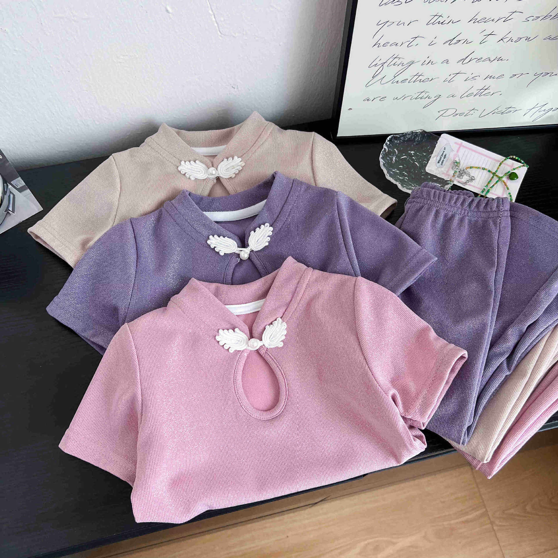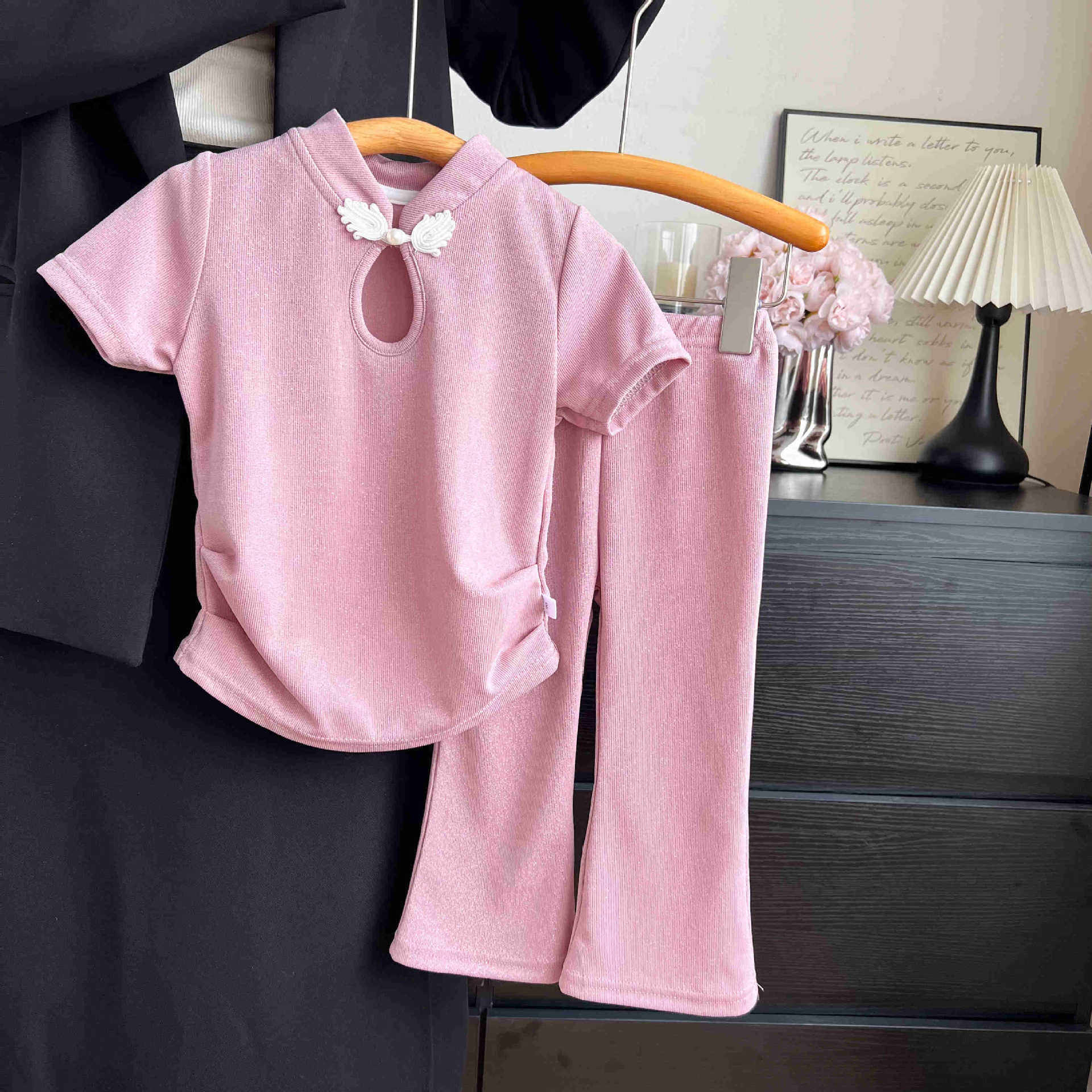 Летний детский комплект, китайские штаны-клёш, китайский стиль, в западном стиле, детская одежда