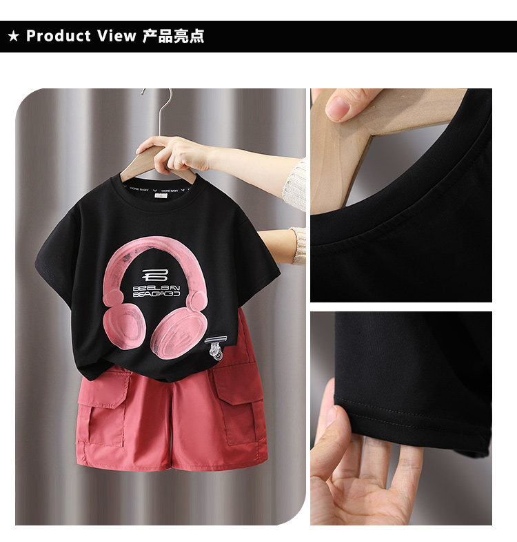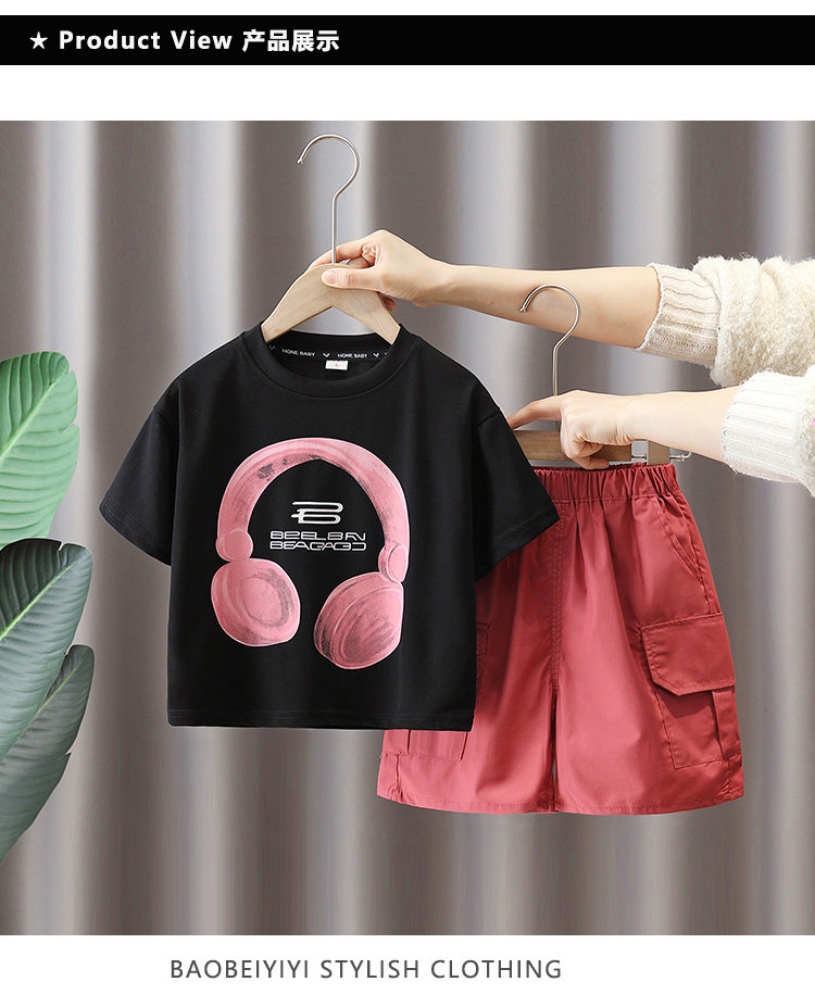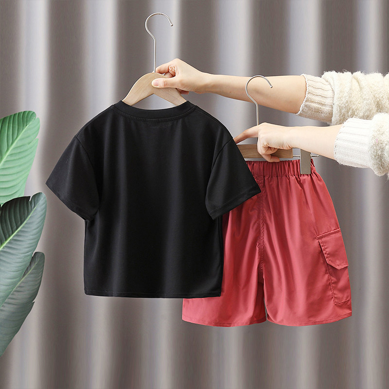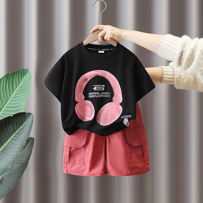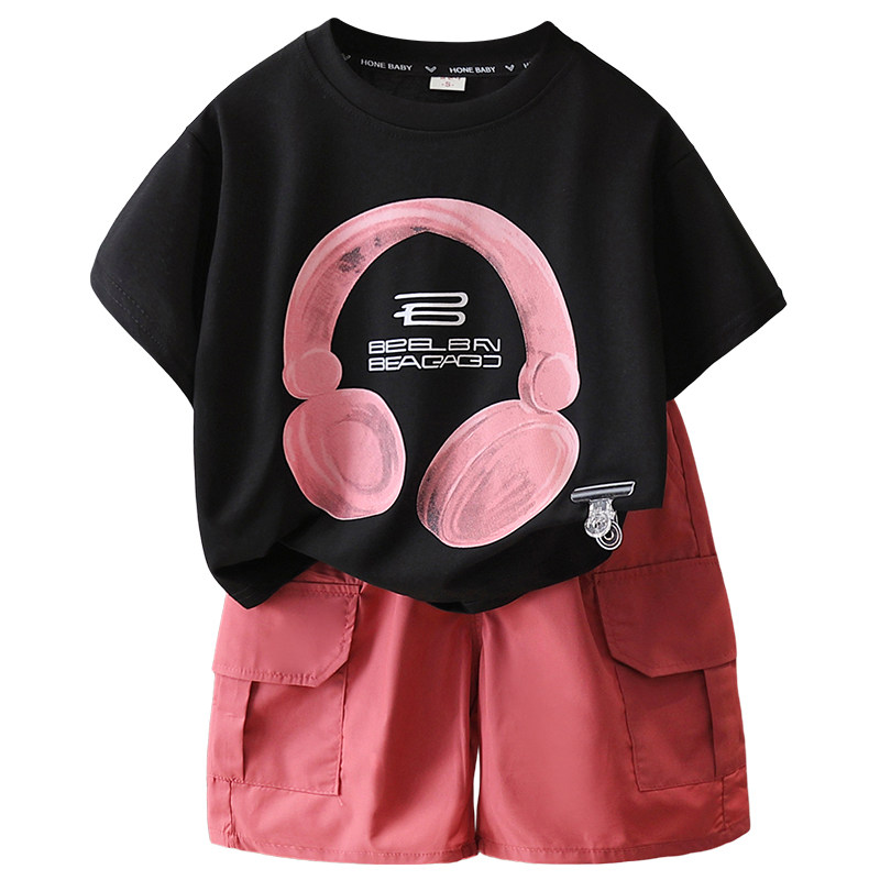 Детские нарукавники, комплект, летняя летняя одежда для мальчиков, наушники, футболка, детская одежда, в американском стиле