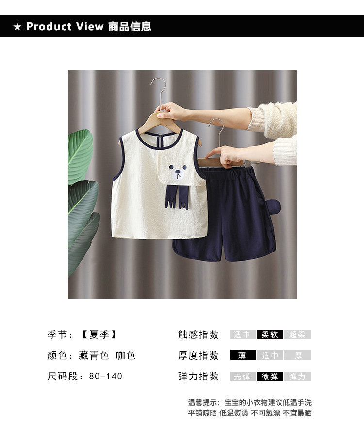 Летняя одежда, детский комплект, мультяшный летний жилет без рукавов, с медвежатами, в западном стиле