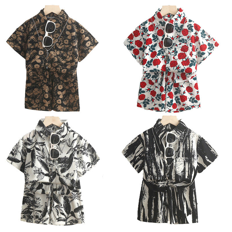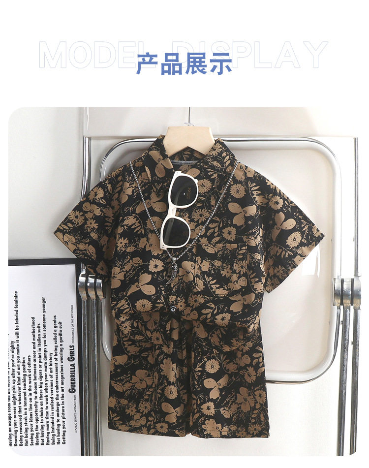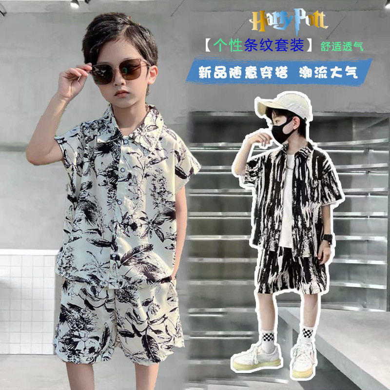 Рубашка для мальчиков, комплект, летняя форма, шорты, детская одежда