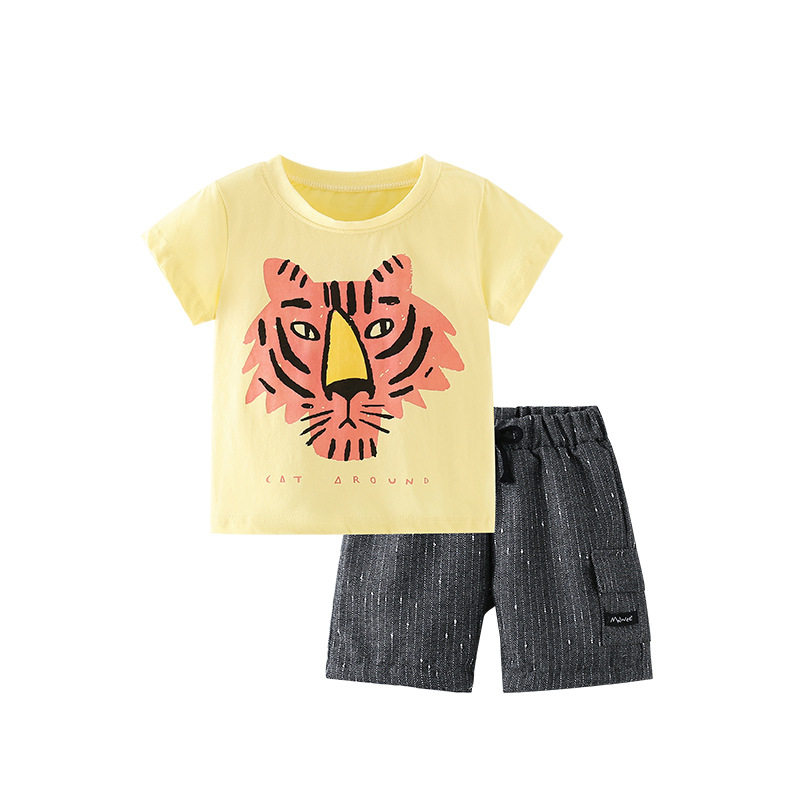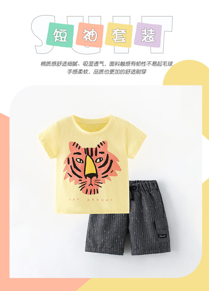 Комплект, детская летняя одежда с круглым воротником, европейский стиль, детская одежда