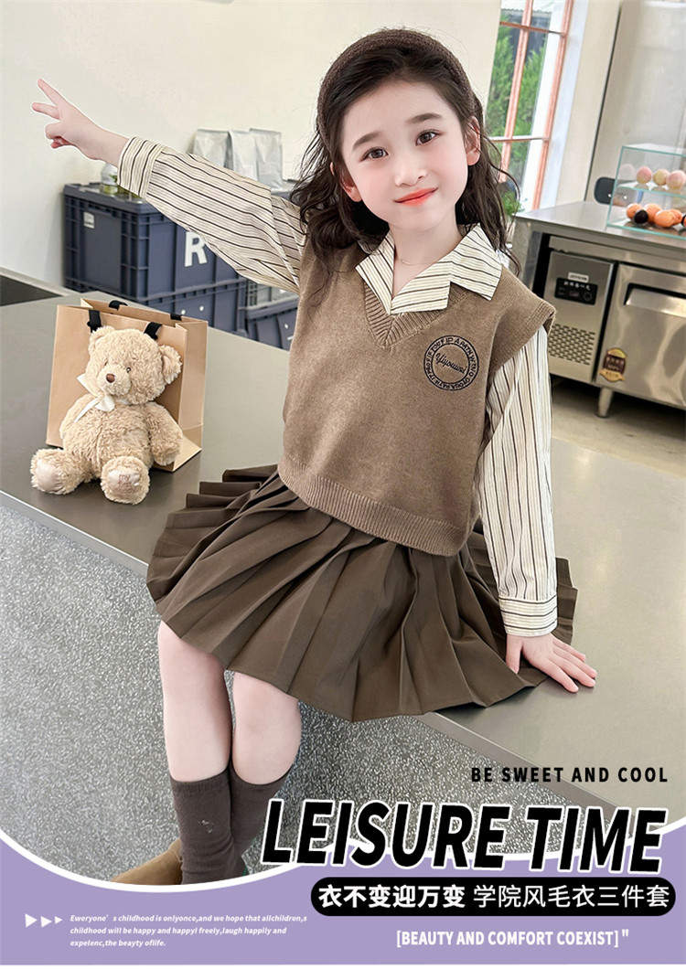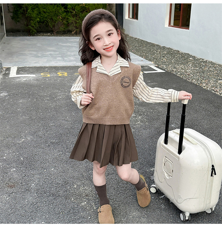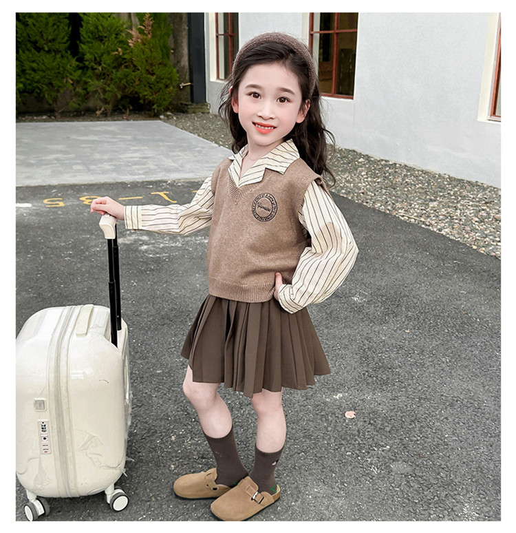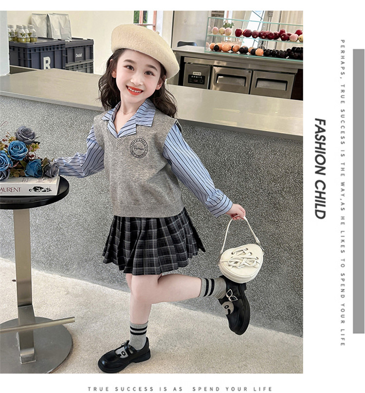 Комплект, детская осенняя рубашка, юбка, 3 предмета