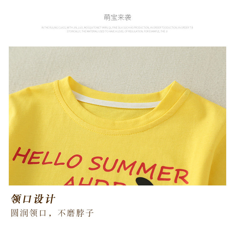 Летняя одежда, летний комплект, детская хлопковая мультяшная футболка с коротким рукавом для отдыха, штаны