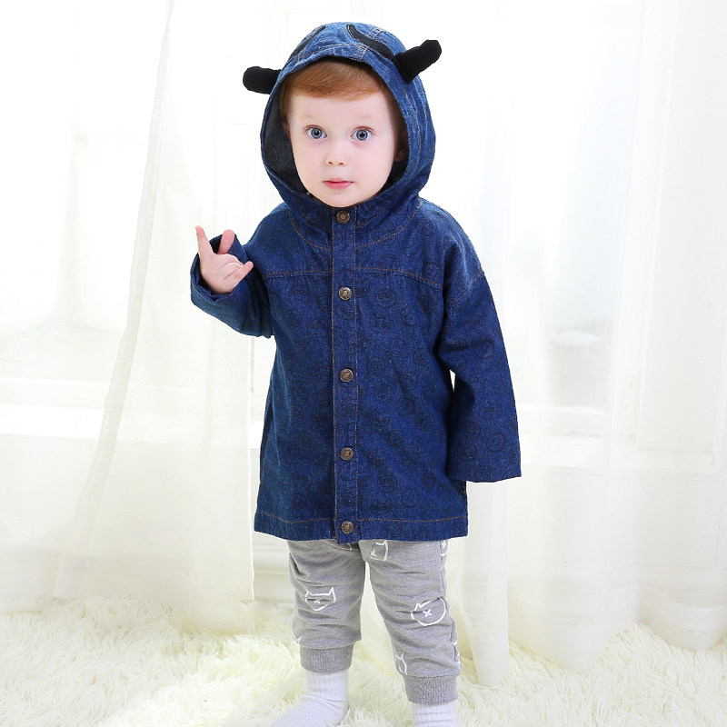 Детская весенняя джинсовая мультяшная куртка с капюшоном, хлопковый детский комбинезон, 2019