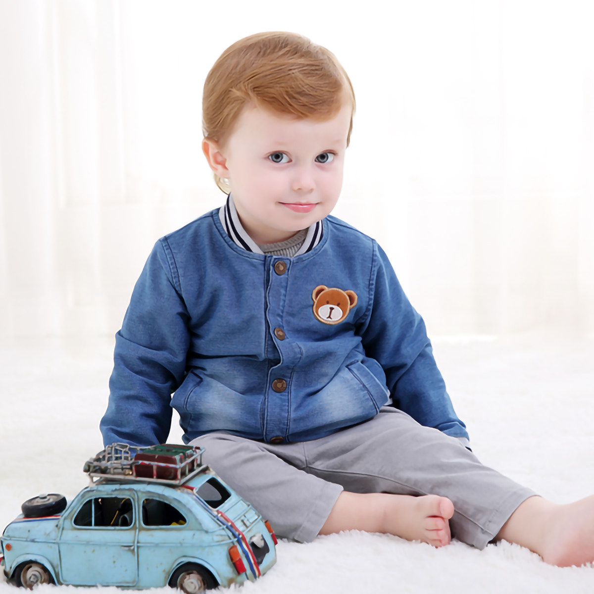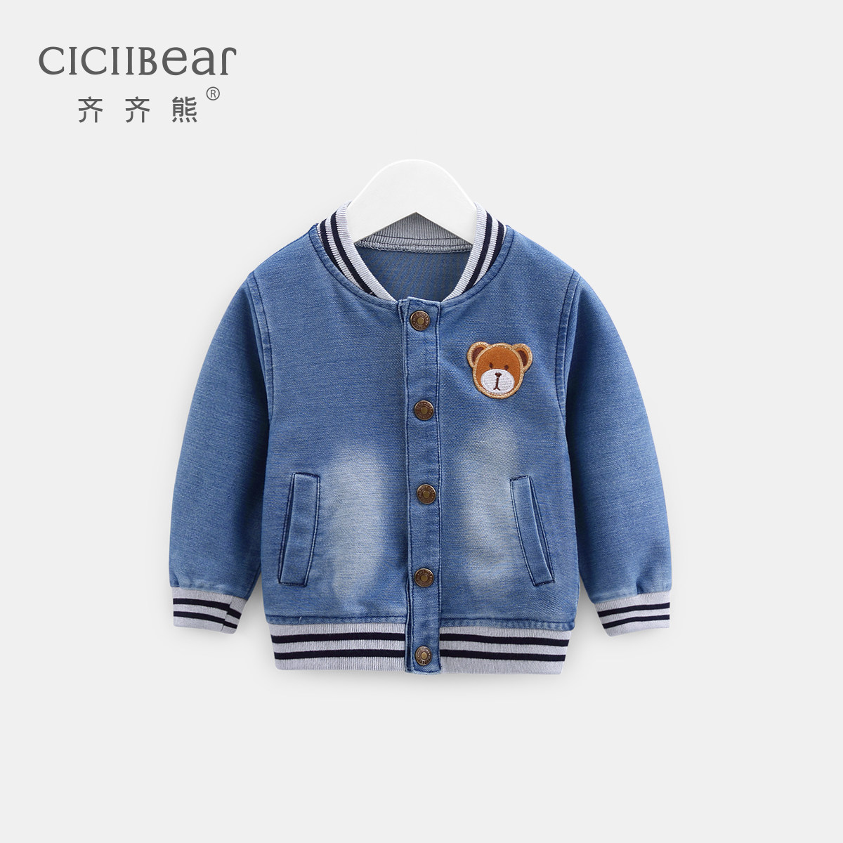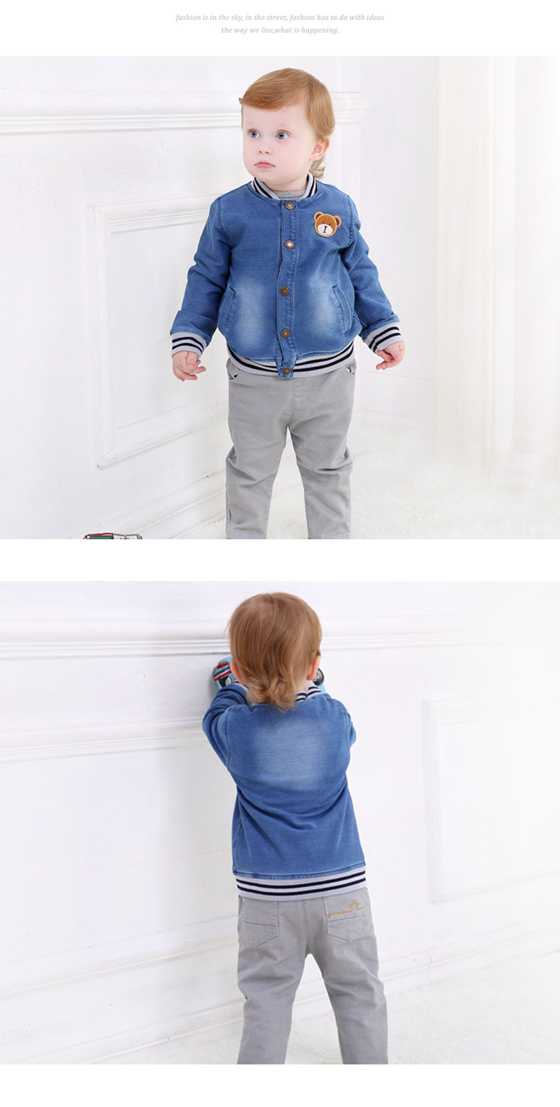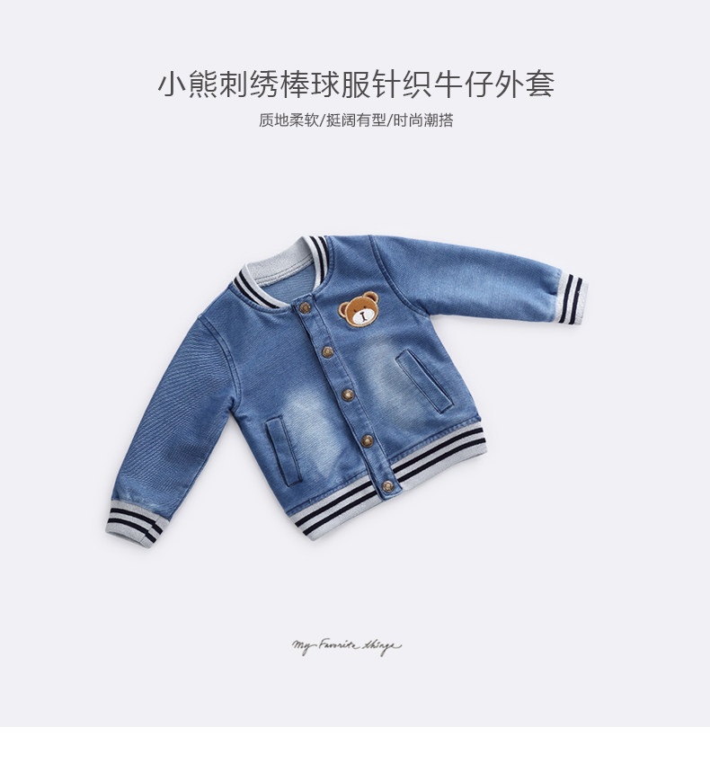 Весенняя джинсовая детская куртка подходит для мужчин и женщин для девочек, мультяшный комбинезон, бейсбольная форма для отдыха, с медвежатами