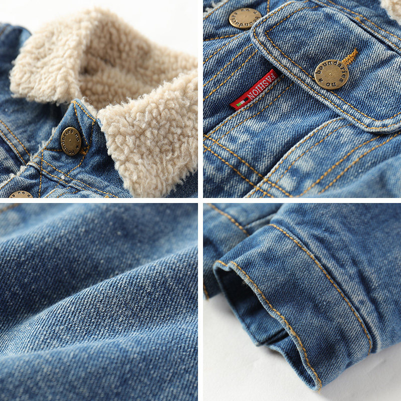 Флисовая джинсовая детская бархатная куртка для мальчиков, детский утепленный пуховик, 2023, детская одежда
