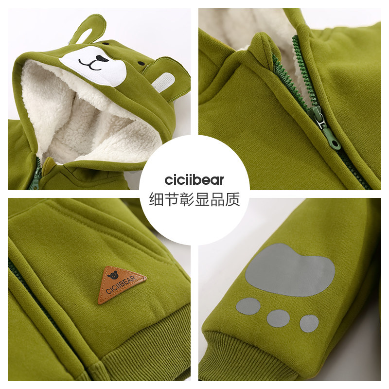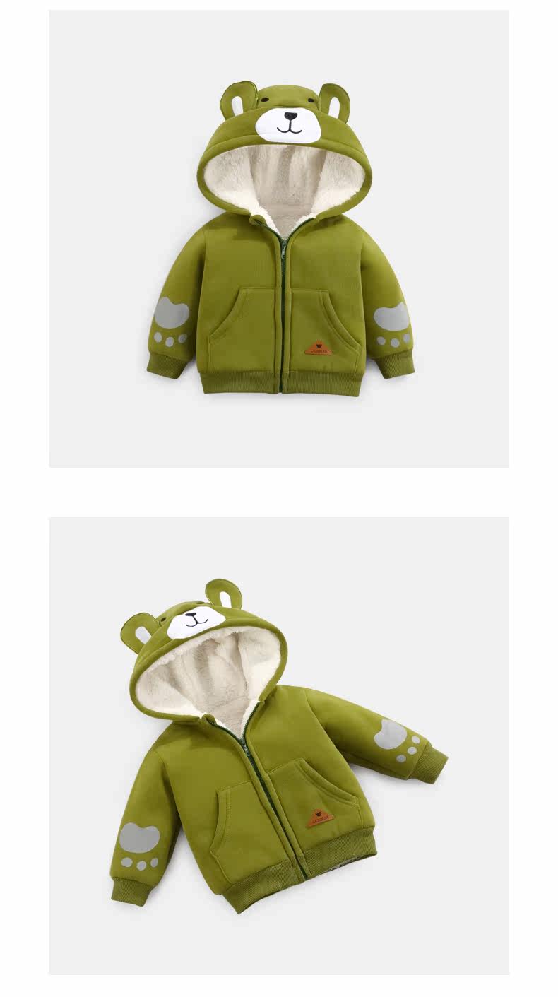 Зимнее детское утепленное трехмерное термобелье подходит для мужчин и женщин для девочек, утепленная толстовка с капюшоном, с медвежатами