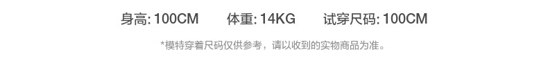| Справочная высота: | 90см(90см(2 года)), 100 см (100 см (3 года) Небольшой размер рекомендуется выбрать большой код), 105 см (110 см (4 года) Рекомендуется, чтобы выбрать большой код) Небольшой код), 110см(110см(5 лет)) |