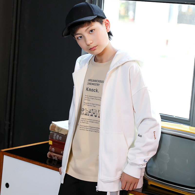 Осенняя трикотажная куртка с капюшоном, подходит для подростков, 2020, 12-15 лет, в западном стиле