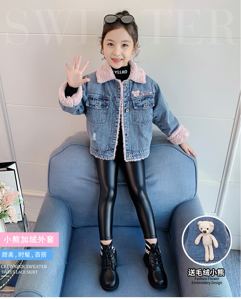 Джинсовая куртка, осенний детский флисовый пуховик, 2020, в западном стиле, увеличенная толщина