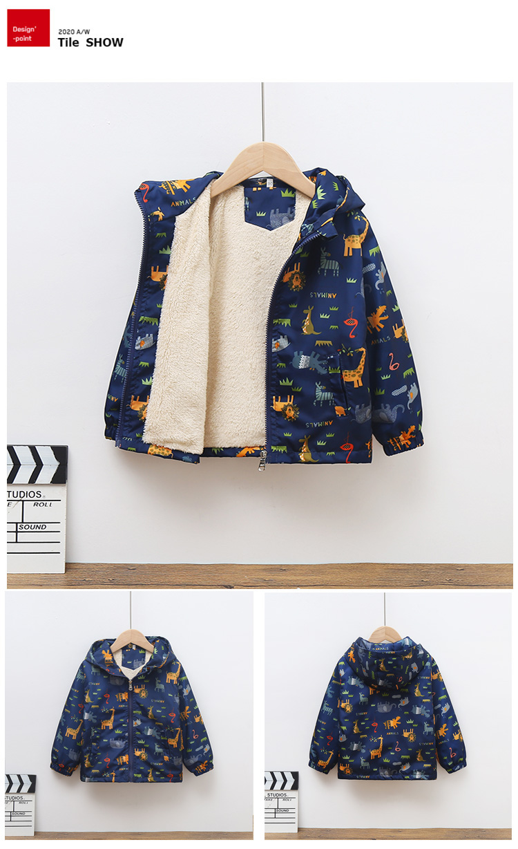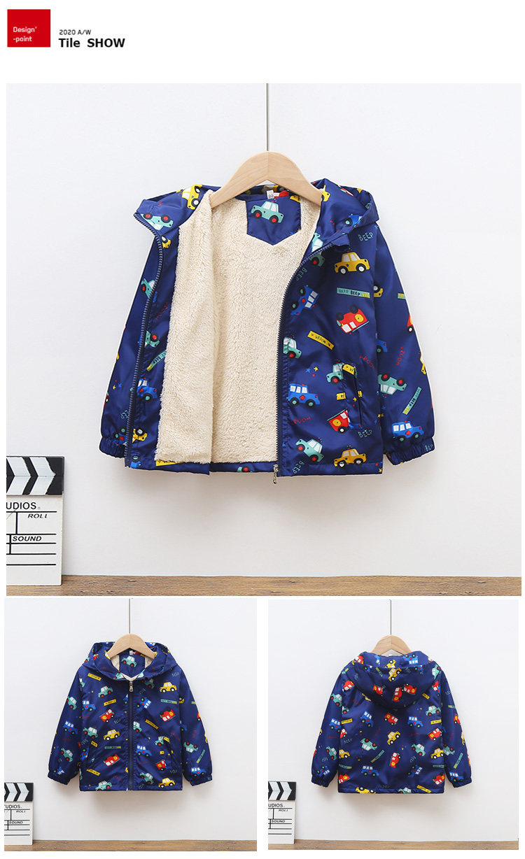 Флисовая бархатная демисезонная детская мультяшная ветрозащитная куртка для мальчиков для отдыха с капюшоном с молнией