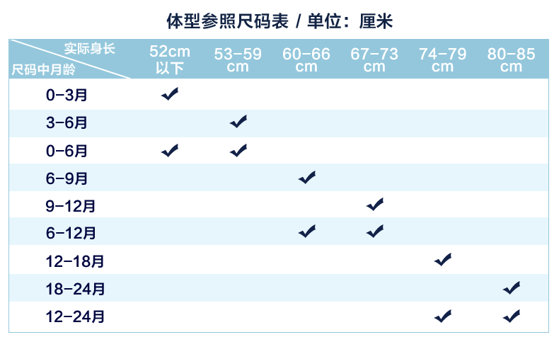 | Справочная высота: | 52 см (52 см (0- марта)), 59см (59см (3-6 месяцев) маловата, рекомендуется выбирать на размер больше), 73 см (73 см (6-12 месяцев) слишком мало, рекомендуется выбирать на размер больше), 80 см (80 см (12-18 месяцев) слишком малы, рекомендуется выбирать на размер больше), 90см(90см(18-24 месяца)) |