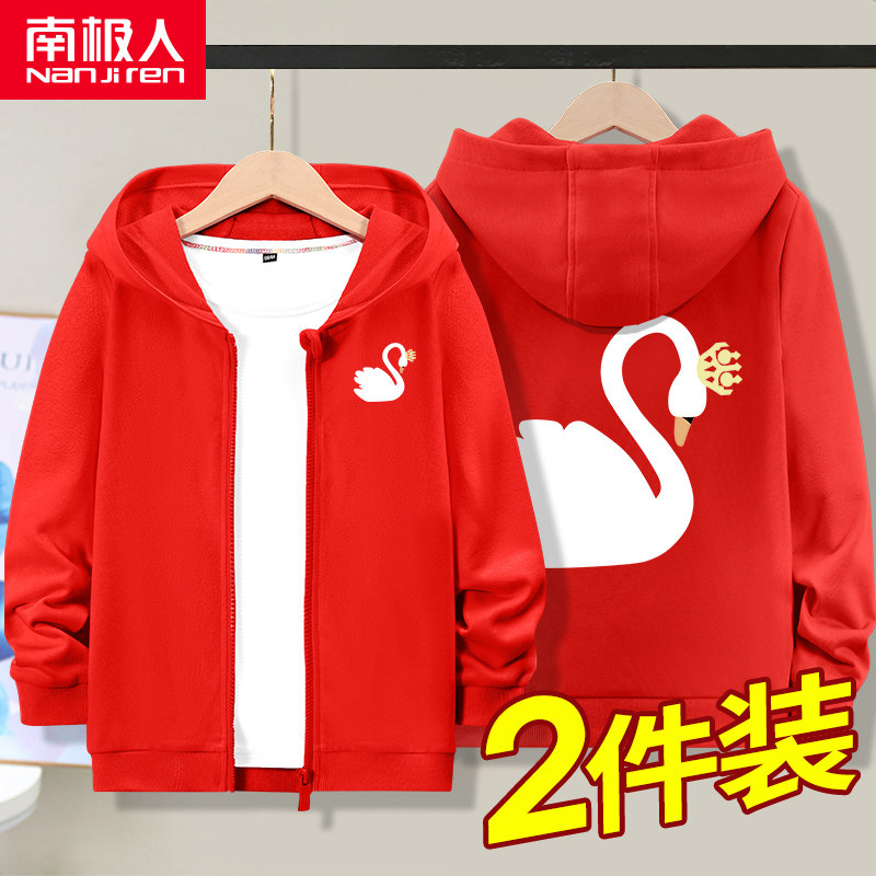 Весенняя осенняя модная куртка для школьников и студентов, красная детская бархатная толстовка с капюшоном, подходит для подростков