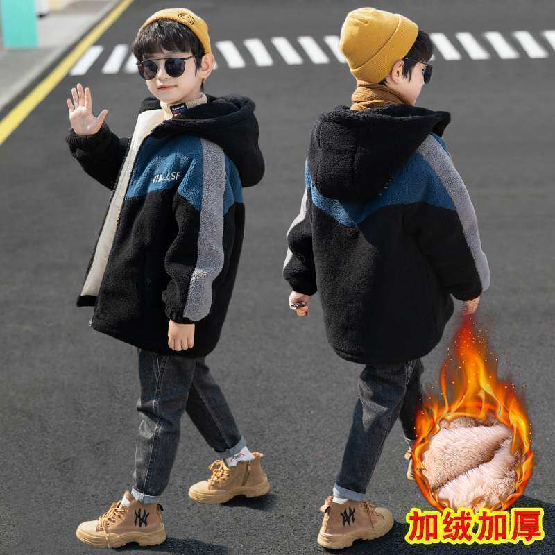 Пуховик для мальчиков, бархатная куртка, флисовый детский демисезонный комплект, увеличенная толщина, коллекция 2022, подходит для подростков