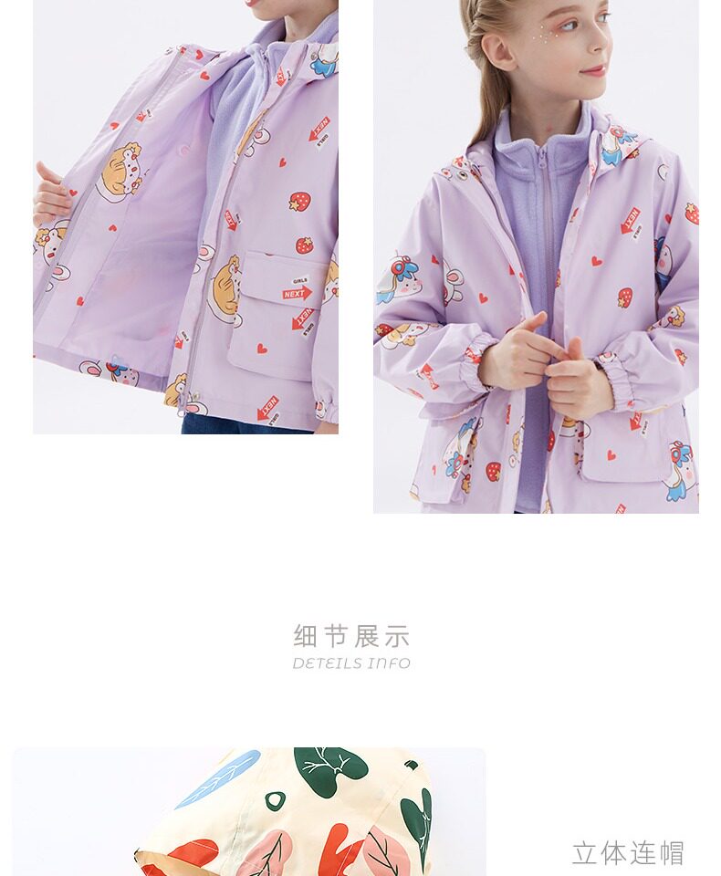 Детская демисезонная осенняя тонкая куртка, ветрозащитный съемный плащ, в западном стиле, подходит для подростков, «три в одном»