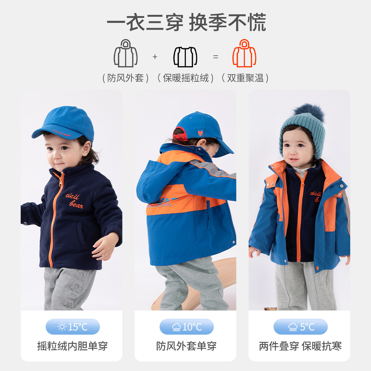 Куртка для мальчиков, съемный детский пуховик, утепленный зимний плащ, «три в одном»