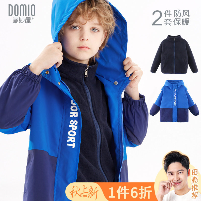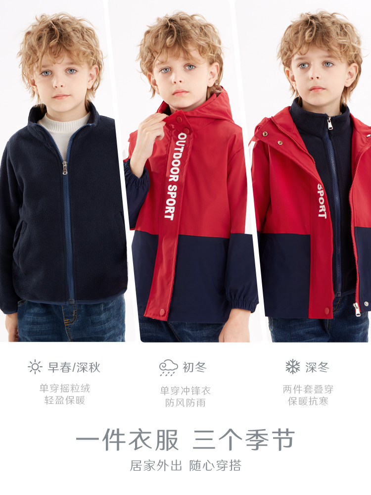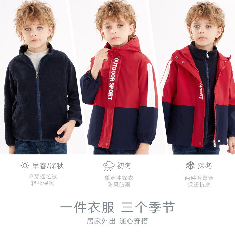 Детская флисовая куртка для мальчиков, осенний ветрозащитный комплект, плащ, подходит для подростков, в западном стиле, «три в одном»