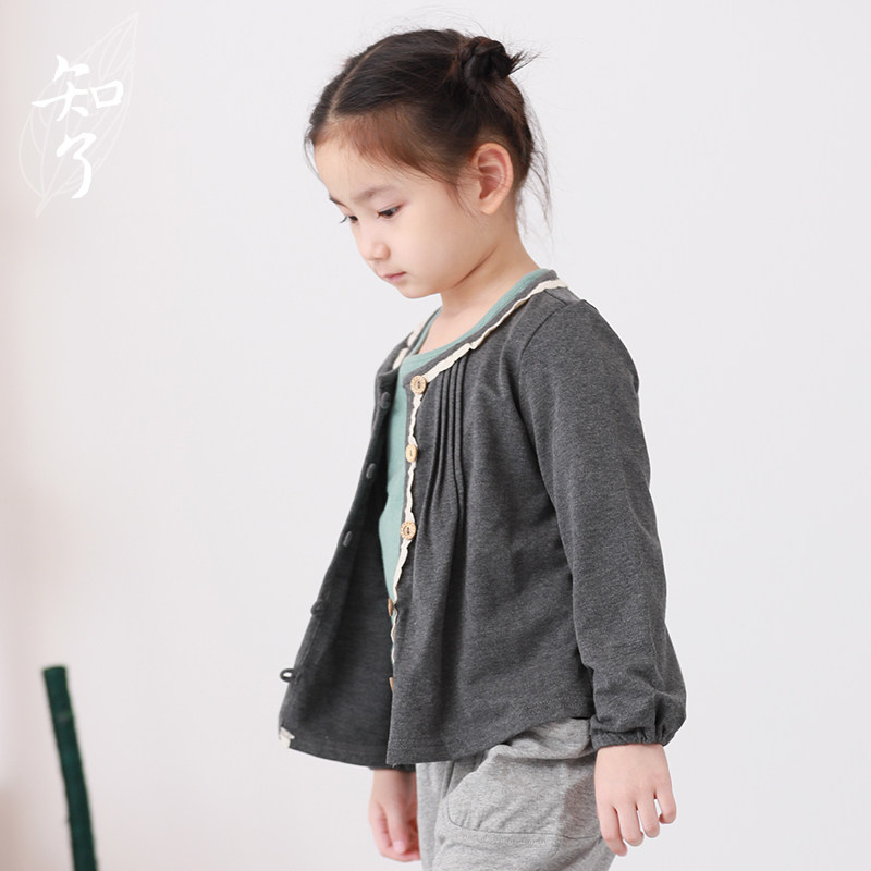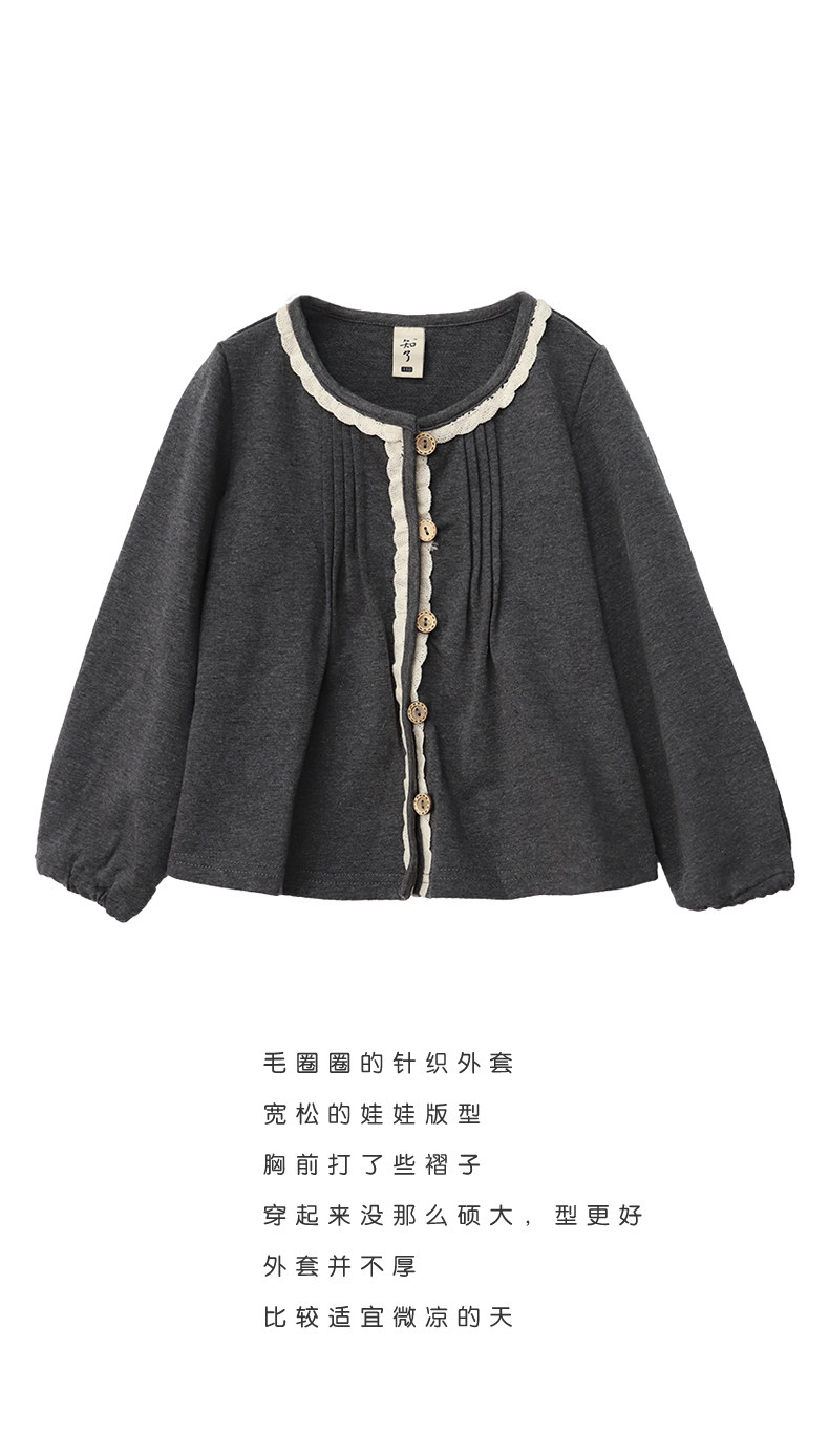 知了 Осенняя трикотажная детская куртка с круглым воротником, толстовка, кардиган, детская одежда, подходит для подростков
