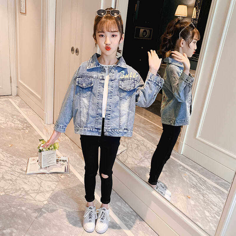 Джинсовая весенняя детская куртка, коллекция 2021, в западном стиле, детская одежда, подходит для подростков